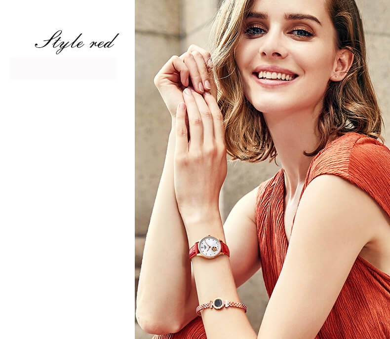 +Thiết kế hở tim phá cách kết hợp khéo léo với hoạ tiết hoa 4 cánh, viền mạ vàng PVD, cùng dây da màu đỏ thanh lịch sẽ khiến bạn nhận được sự "nể phục" vì gu chọn đồng hồ, cách chơi đồng hồ của mình !