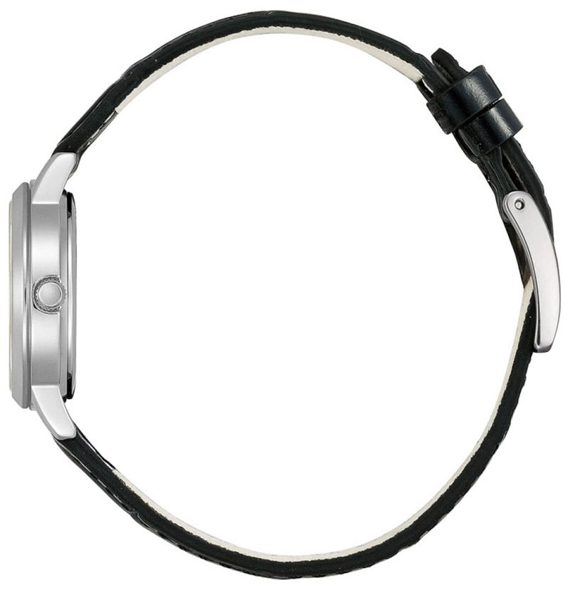 Đặc điểm kỹ thuật Dây đeo bằng da Mặt kính khoáng Chống nước Giờ hiện hành thông thường Đồng hồ kim: 3 kim (giờ, phút, giây), 3 mặt số (24 giờ, ngày, thứ) Độ chính