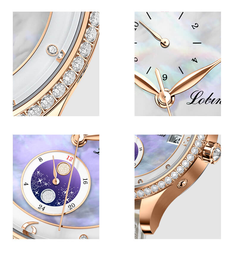 Nhãn hiệu LOBINNI Mã sản phẩm No.2065-1 Giới tính Nữ Kiểu máy Automatic (Máy Cơ) Đường kính mặt 36 mm Độ dày 9,7 mm Chất liệu vỏ Thép không gỉ 316L Chất liệu dây Dây da cao cấp Chất liệu mặt kính Mineral Crystal