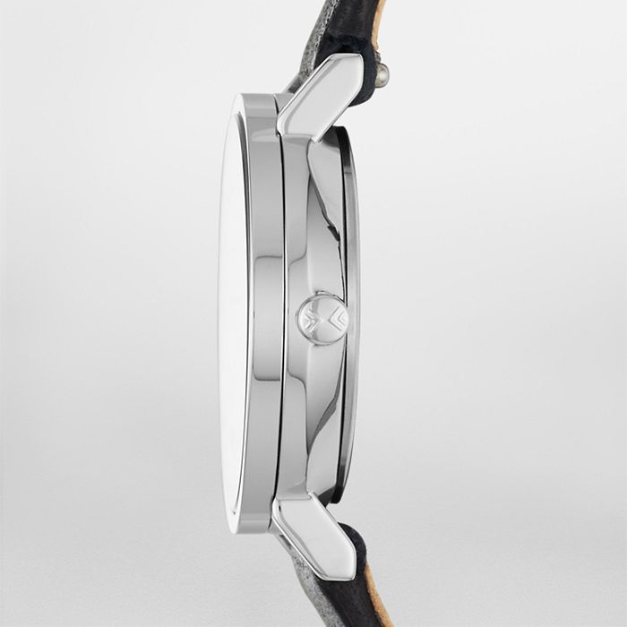 Đặc điểm kỹ thuật Dây đeo bằng da Mặt kính khoáng Chống nước Giờ hiện hành thông thường Đồng hồ kim: 3 kim (giờ, phút, giây), 3 mặt số (24 giờ, ngày, thứ) Độ chính