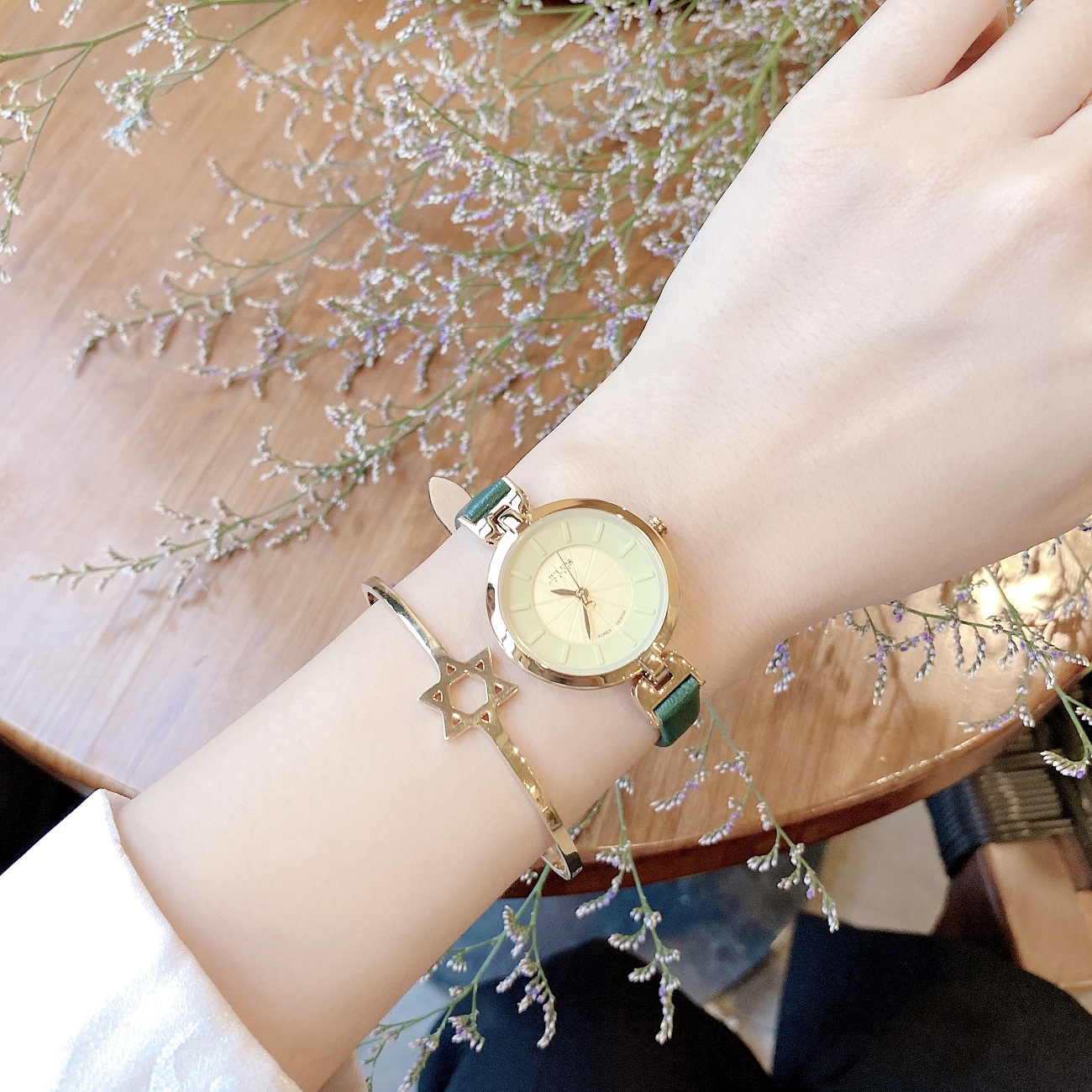 THÔNG SỐ SẢN PHẨM Thương hiệu: JULIUS Mã sản phẩm: JA-864 (Xanh rêu) Dành cho: Nữ, sinh viên, nhân viên văn phòng, doanh nhân… Chất liệu dây: Dây da Genuine Leather bền bỉ Chất liệu mặt kính: Mặt kính khoáng