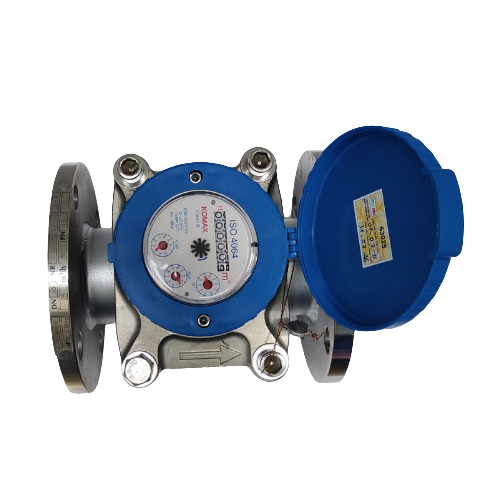 Đồng hồ nước komax thân inox DN125 nối bích sản xuất theo tiêu chuẩn BS hay PN16 với tiêu chuẩn ISO 4064 được Việt nam phê chuẩn, lưu lượng trung bình 100m3/h và lưu lượng maximum đạt tới 200m3/h Qmin = 20m3/h, kích thước đường ống 125mm, dài 250mm rộng 250mm cao 295mm lắp đặt theo phương nằm ngang theo chiều của đường ống.