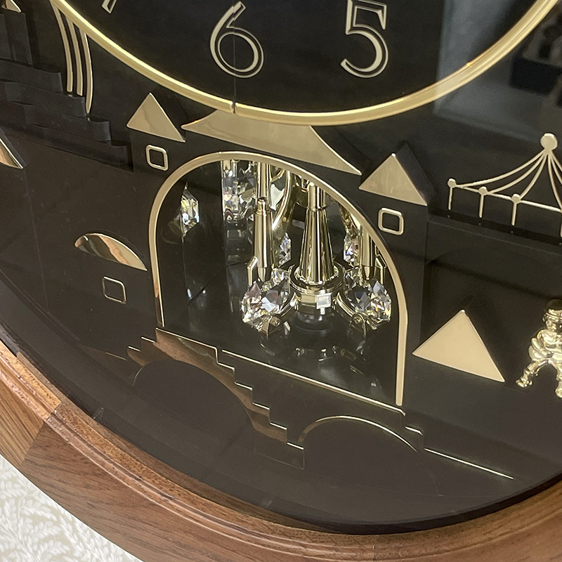 Mua tại TiktokĐồng hồ treo tường Rhythm Magic Motion 4MH438WU06, dùng pin (D x 2),vỏ gỗ màu nâu Kích thước 42.4 x 52.5 x 12.5cm, trọng lượng 4.0kg. Âm thanh thính phòng SIP (sound in palace) với 24 bản nhạc cổ điển, 6 bản giáng sinh (12×2 Melodies & 6 X-mas Songs). Quả lắc cẩn đá pha lê. núm chỉnh âm lượng tiện lợi, Mắt cảm ứng ánh sáng ngưng phát nhạc khi thiếu sáng. Mặt đồng hồ mở ra khi phát nhạc mỗi đầu giờ.