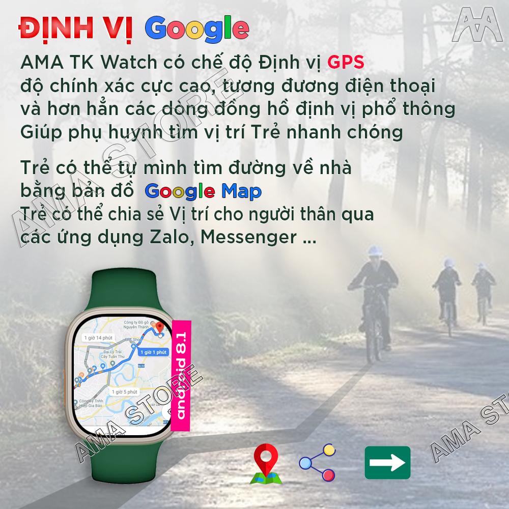 Đồng hồ Thông minh AMA Smart watch TK Titan Android 8.1 Lắp Sim Định vị GPS Google kết nối Wifi 4G Blueltooth tải App qua CH. play FB Messenger Skype Viber Wechat Line Tele xem được Video Youtube TikTok chơi Game cho Trẻ em Người lớn Hàng nhập khẩu