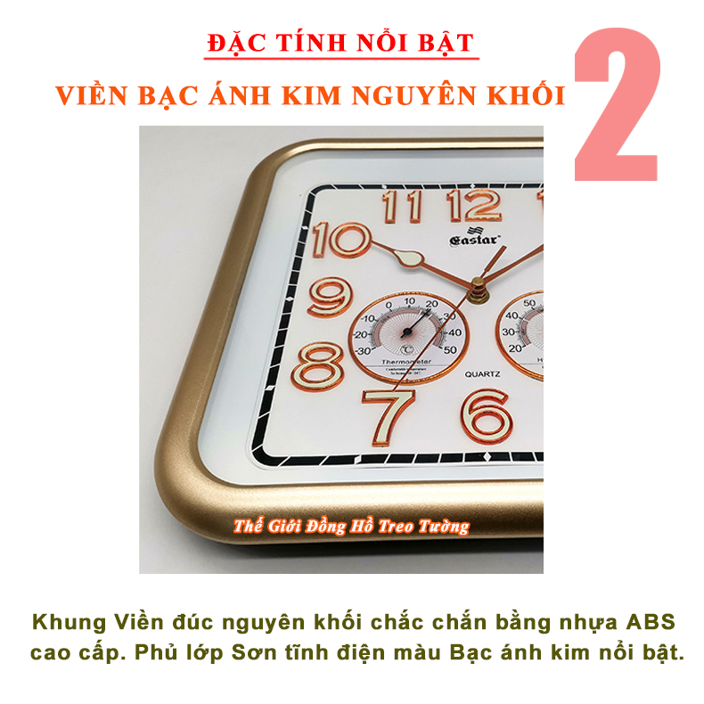 1. ĐẶC ĐIỂM NỔI BẬT: - Đồng Hồ Treo Tường Cao Cấp EASTAR Kim điện tử, Dạ quang, Đồng hồ Lịch Vạn Niên và Nhiệt kế hình Chữ nhật, Mặt kính Nổi, hiện đại, sang