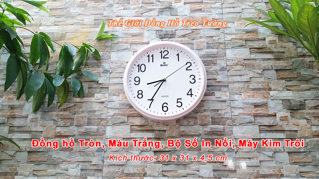 ✨Đồng hồ Treo Tường Cao cấp KIM TRÔI EASTAR Tròn 31cm - Số Nổi 3D - Tặng Pin Maxell - BH 1 Năm
