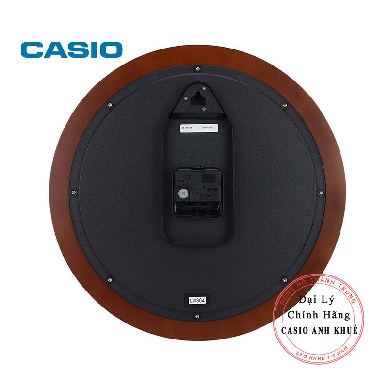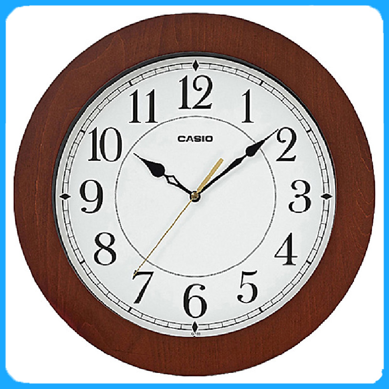 Đồng hồ treo tường Casio khung gỗ tròn kim trôi đường kính cả vỏ 26cm