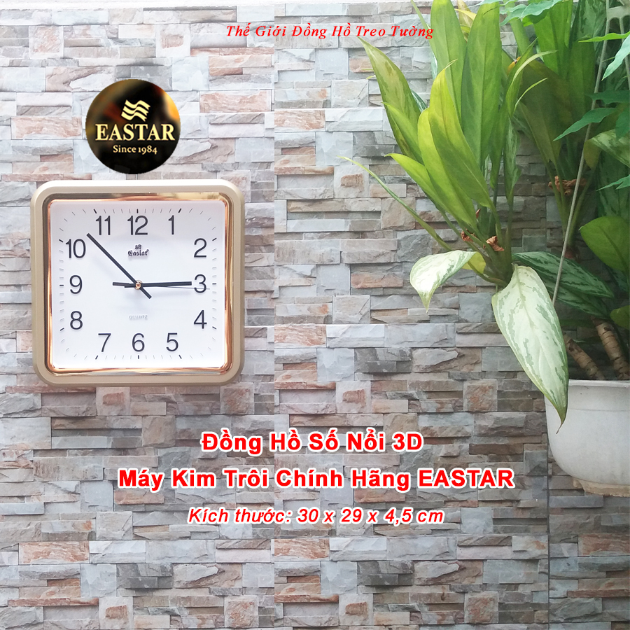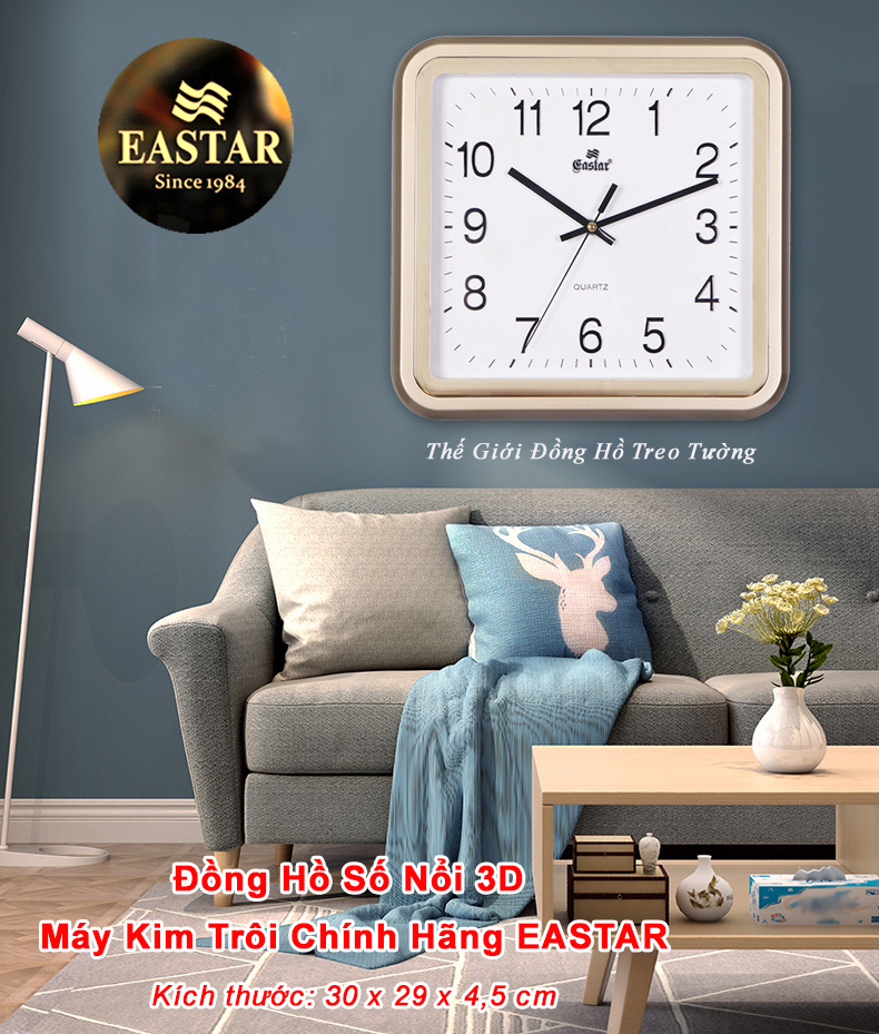 Đồng hồ Treo tường Cao Cấp EASTAR Tròn, Đồng hồ Kim trôi kiểu truyền thống Unisex, Mặt Vuông bo tròn, đường kính 30 cm, dày 4 cm.