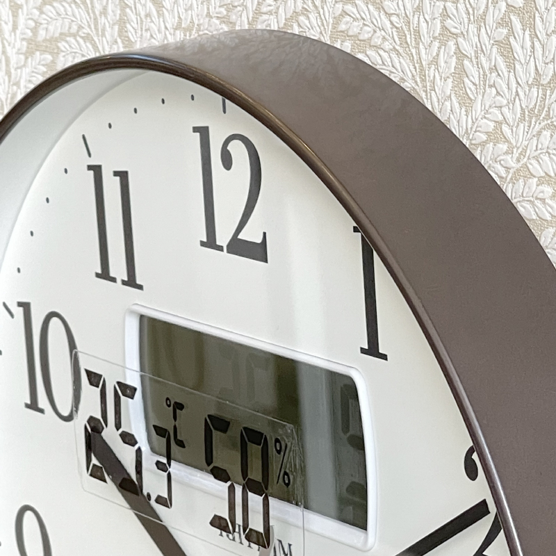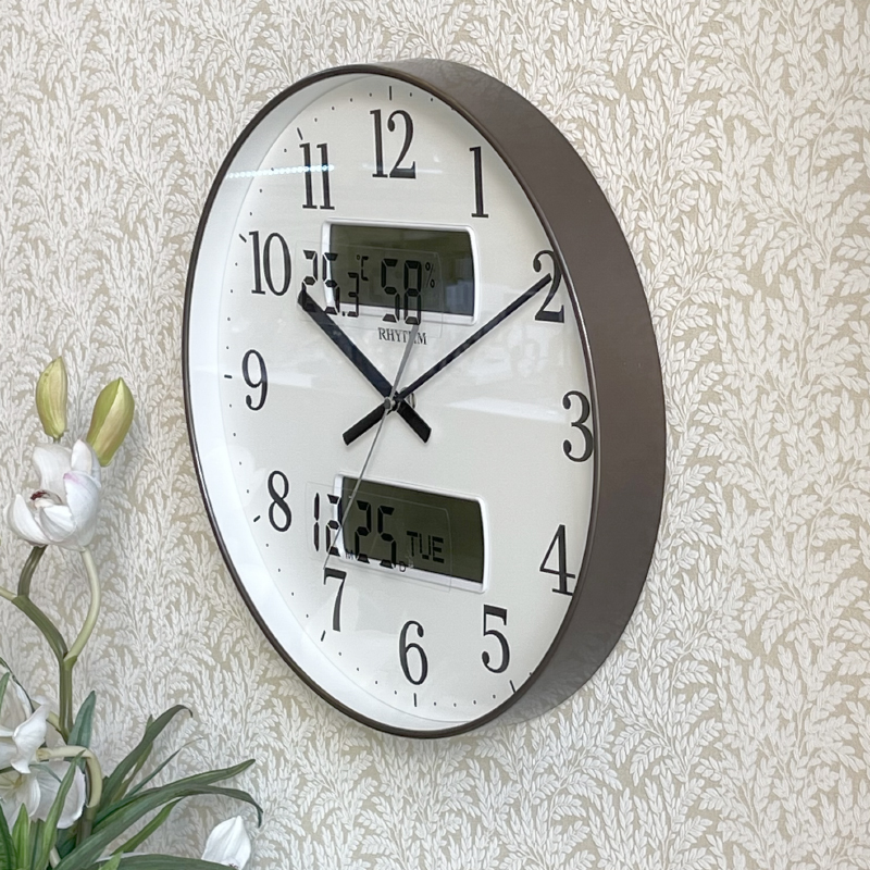 Mua tại TiktokĐồng hồ treo tường Rhythm CFG724NR06, dùng pin (AAx2), vỏ nhựa màu nâu kim loại.