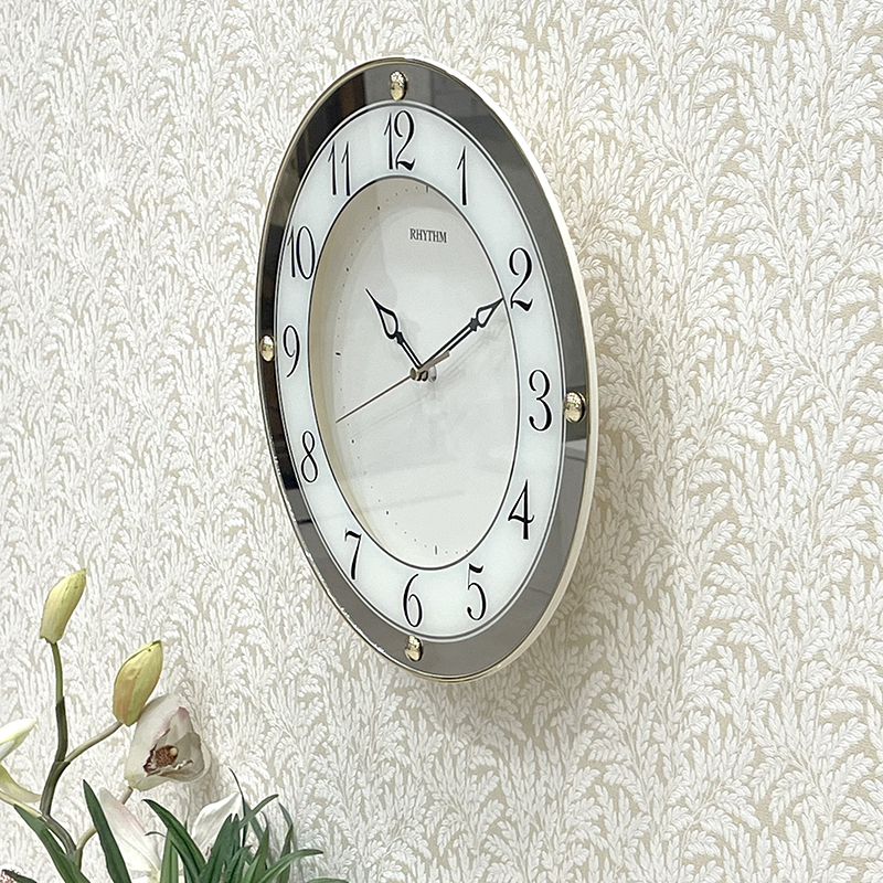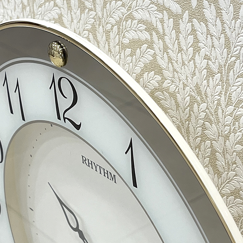 Đồng hồ treo tường Nhật Bản Rhythm CMG876NR18, dùng pin (AA x 1), vỏ nhựa màu vàng / kết hợp mạ vàng sang trọng. Kích thước 31.5 x 4.5cm, trọng lượng 625g. Máy kim trôi chạy cực êm, chính xác, bền bỉ. Mặt kính mạ gương sáng bóng đẹp mắt.