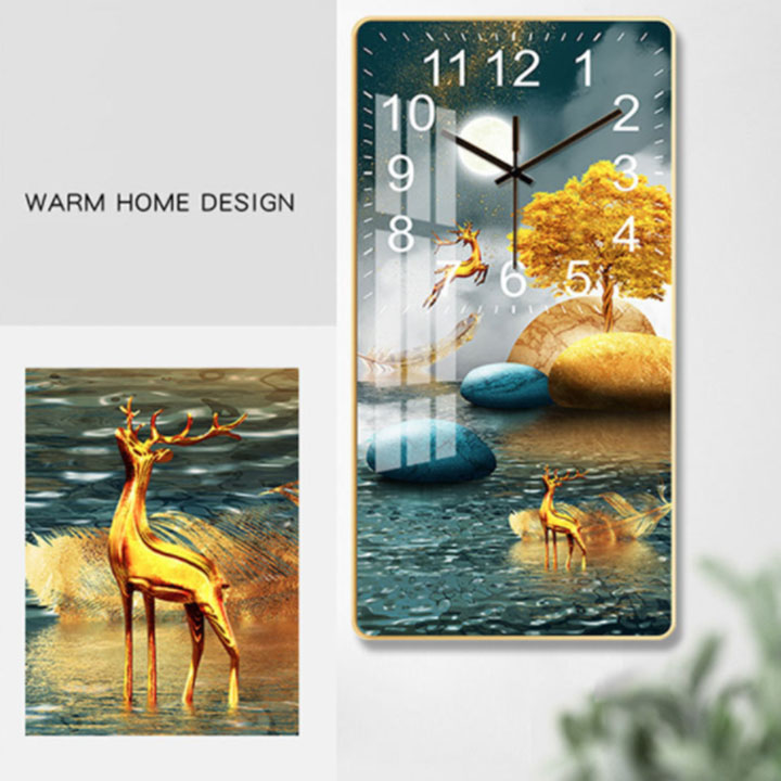 Tranh đồng hồ hươu vàng tài lộc - Kích thước của tranh : 35x70cm - 45x90cm -55x110cm-60x120cm - Khác h hàng muốn thay đổi sản phẩm tùy ý như: kích thước, màu sắc kim đồng