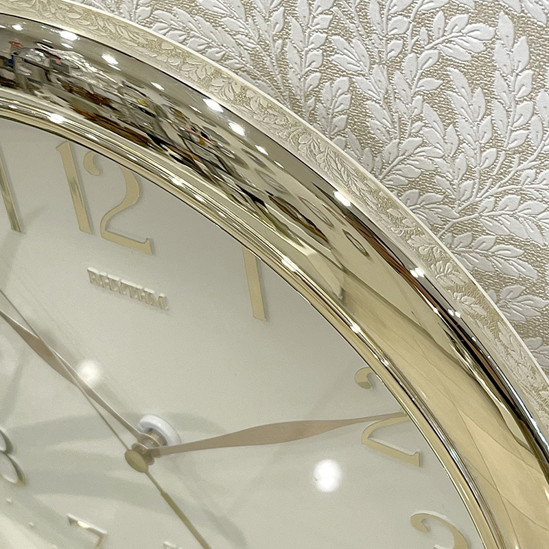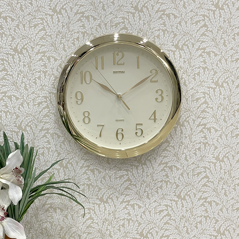 Mua tại TiktokĐồng hồ treo tường Rhythm, dùng pin (AA x 1), vỏ nhựa mạ vàng sáng bóng. Kích thước 28.0 x 4.1cm, trọng lượng 700g. Máy kim trôi chạy cực êm, chính xác, bền bỉ.