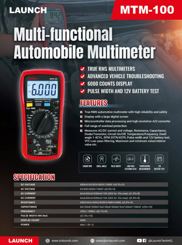 LAUNCH MTM-100 – Đồng hồ đo điện tử chuyên dụng, độ chính xác cao, hỗ trợ đầy đủ chức năng cần thiết cho kỹ thuật viên ô tô chuyên nghiệp!