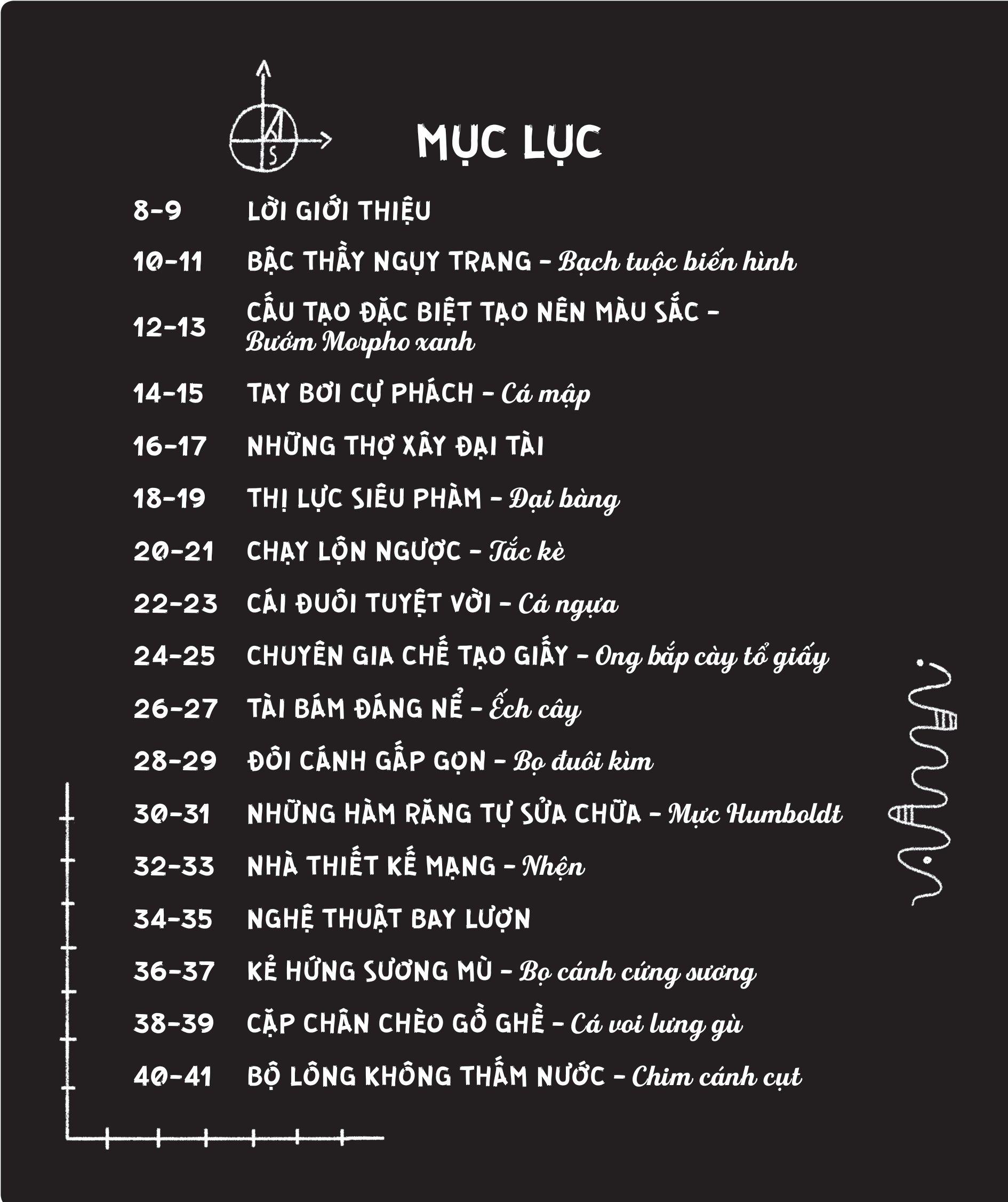Bạn có biết rằng một trong những loại tàu đường sắt nhanh nhất thế giới đã được cải tiến để gây ra ít tiếng ồn hơn và thậm chí còn chạy nhanh hơn là nhờ sự trợ giúp của loài chim bói cá? Hay chính loài mối đã giúp con người thiết kế ra những ngôi nhà vẫn mát mẻ trong thời tiết nóng bức? Và một chú bạch tuộc có thể nắm giữ công thức chế tạo một chiếc áo choàng tàng hình?