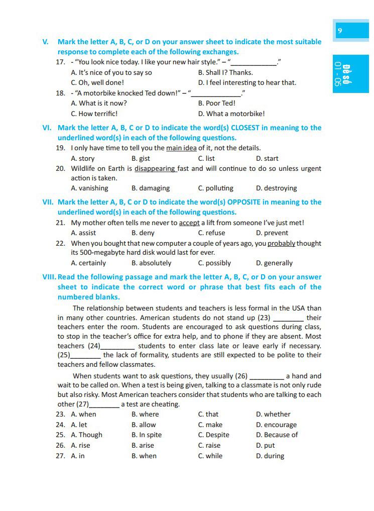 Đột Phá Tiếng Anh Điểm 9+, Bộ Đề Thi Tiếng Anh Vào Lớp 10 - Có Đáp Án này sẽ là cẩm nang giúp các em rút ngắn khoảng cách những hạn chế trong hiểu biết của mình để đến với những đề thi vào lớp 10 tầm cỡ quốc gia sát với cấu trúc đề thi chính thức.
