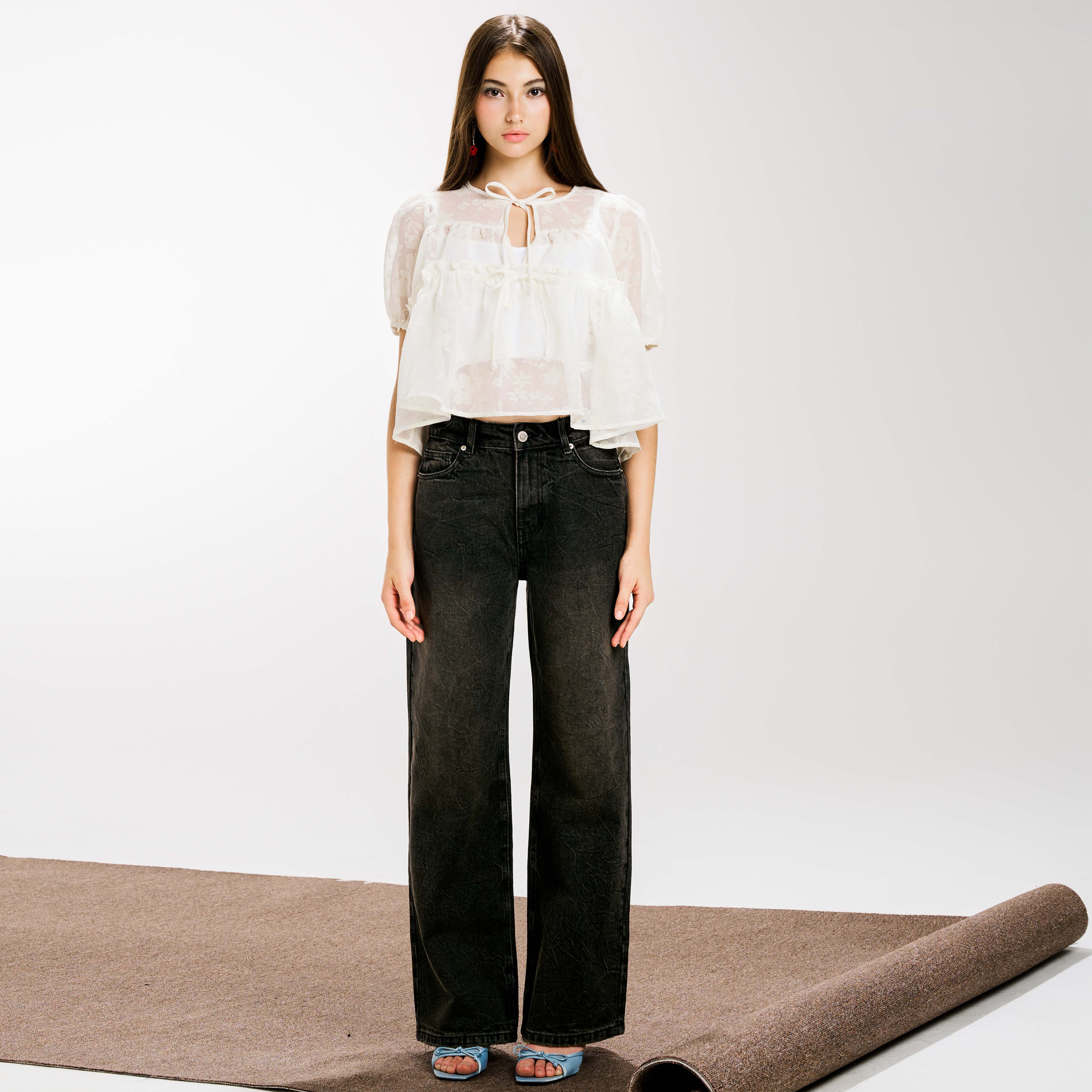 Áo kiểu dáng suông Không tay Cổ cao viền bèo, ruy băng gân viền thắt nơ cổ Cài bằng nút phía sau Chất liệu chính: Polyester Ruy băng gân Polyester Cắt may thủ công tinh