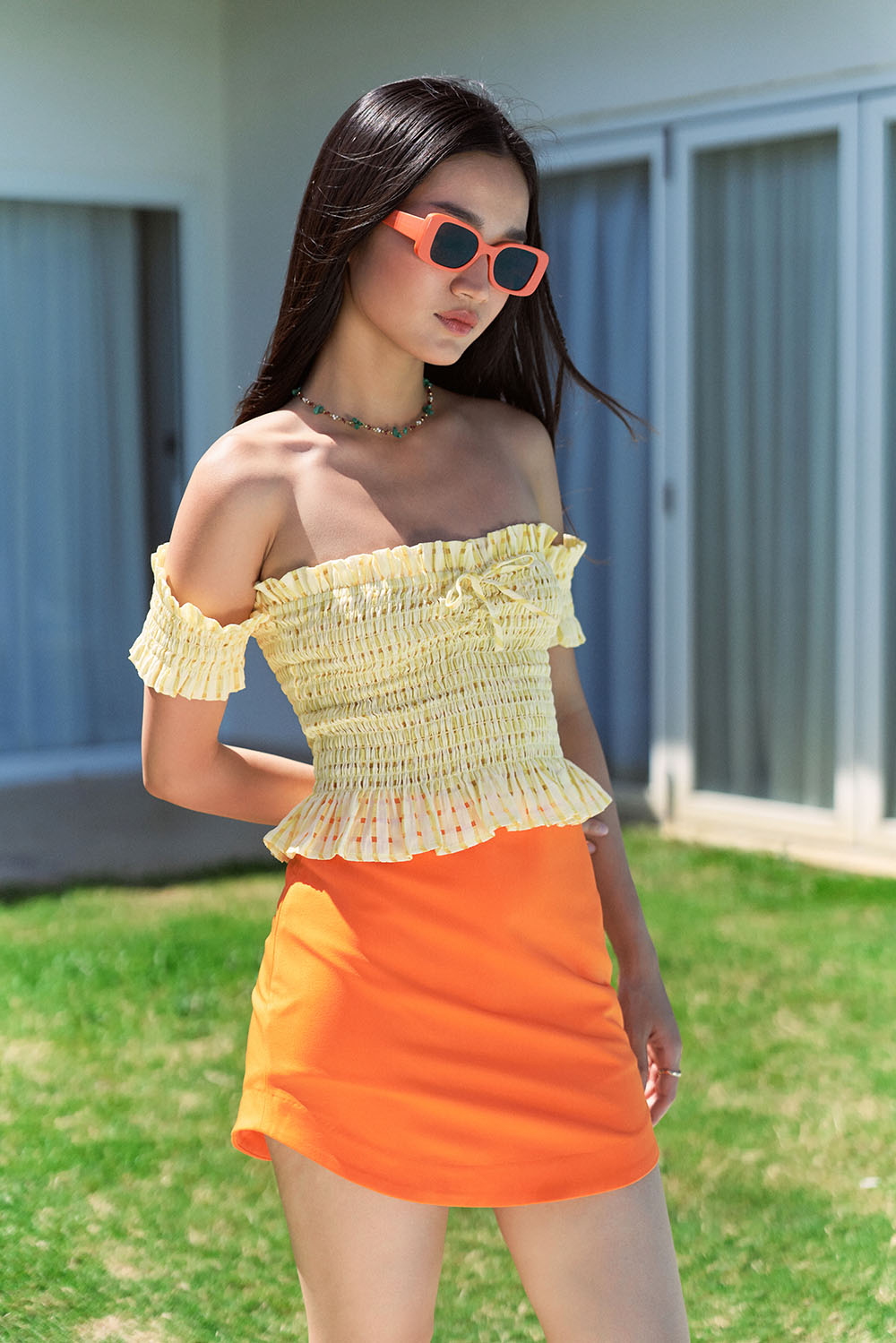 ✨DOTTIE - Chân váy ngắn vạt tròn nữ cam S0127