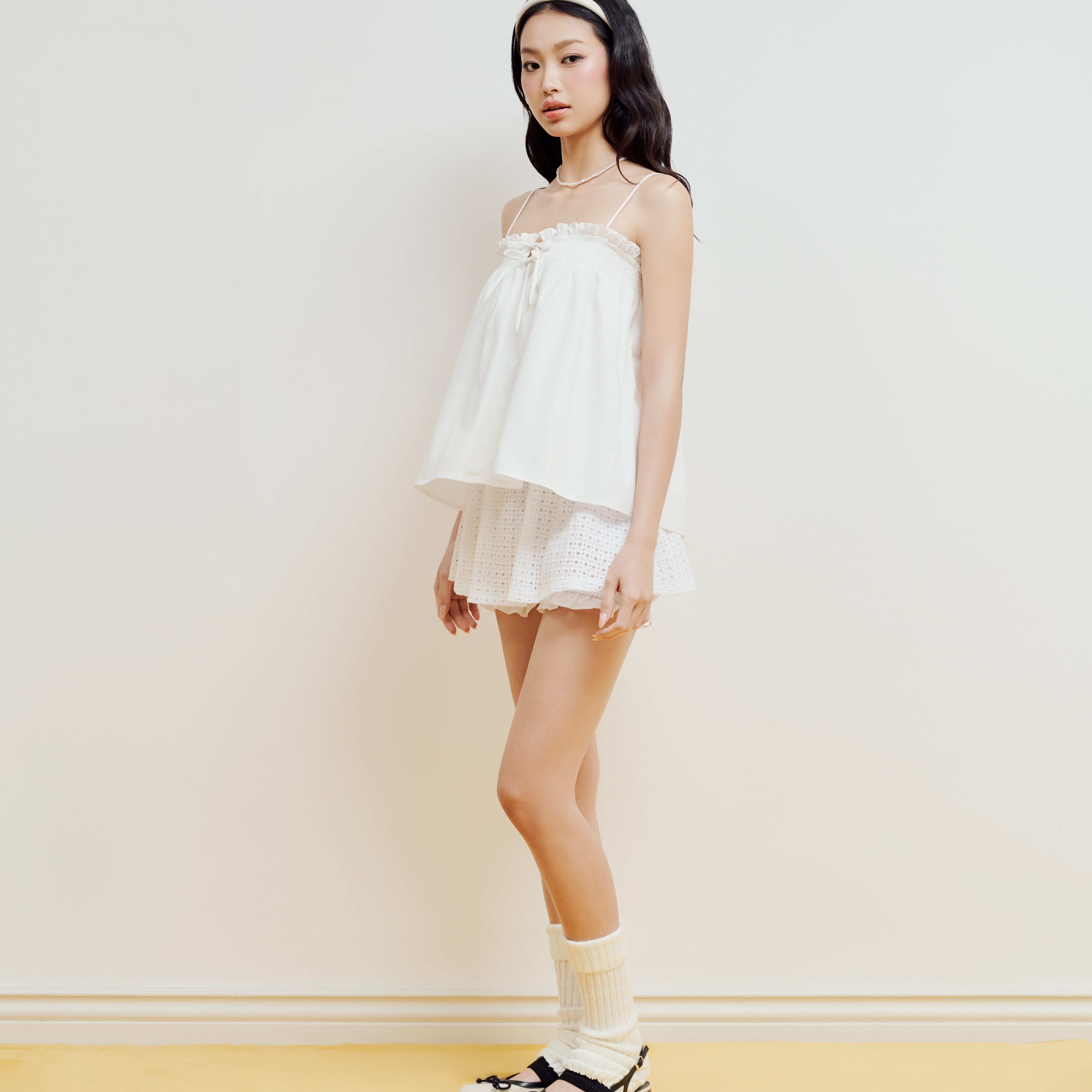 CHI TIẾT SẢN PHẨM - Sản phẩm : Chân váy ngắn dáng bí dáng xòe bồng bềnh có lót quần bên trong xinh xắn mùa hè Amara Miều Est.2013 - Chất liệu : Kate Caro