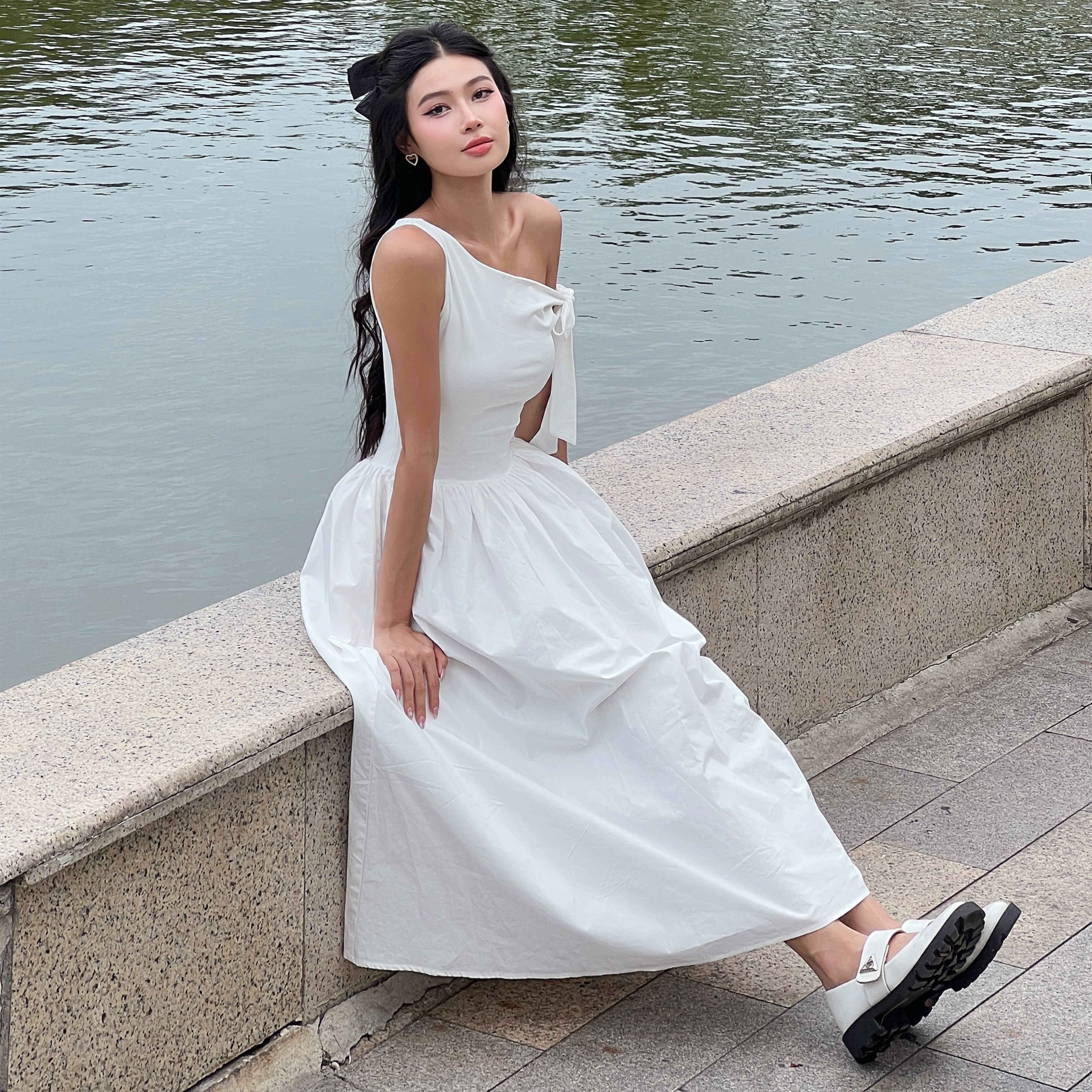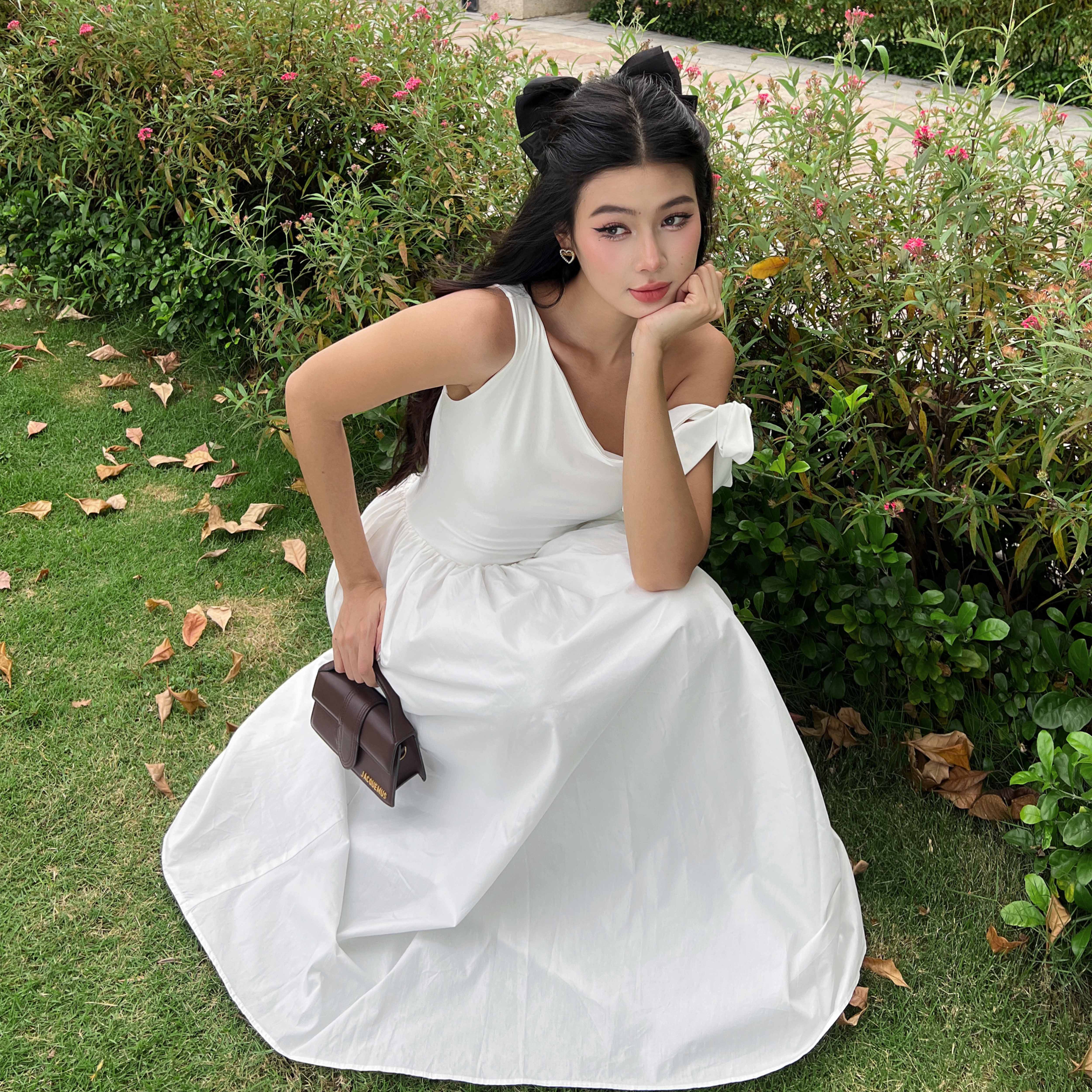 ღ THÔNG TIN SẢN PHẨM: Tên sản phẩm: Đầm trắng túi xéo· Màu sắc: Trắng Chất liệu: Chất gân ý· Chi tiết sản phẩm: không lót, có túi Thông số