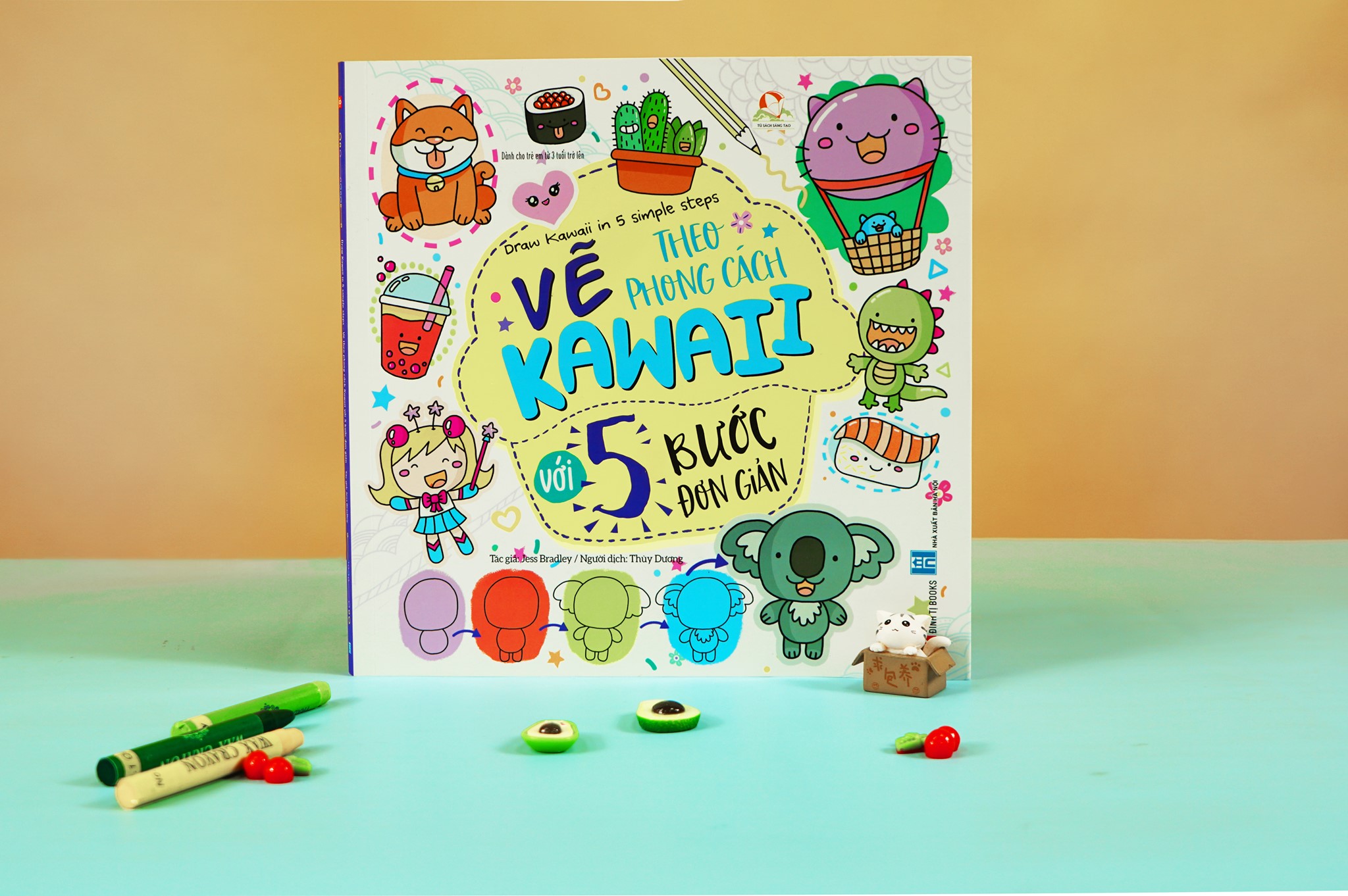 Em đã sẵn sàng trổ tài hội họa chỉ với 5 bước vẽ chưa? Từ chú tắc kè hoa sặc sỡ cho đến chú chim công đỏm dáng, từ chiếc thuyền đang dong buồm ra khơi cho đến ngọn hải đăng đang chiếu sáng rực rỡ, tất cả đều có trong Draw Kawaii in 5 simple steps - Vẽ theo phong cách Kawaii với 5 bước đơn giản. Ngoài hướng dẫn chi tiết, trong cuốn sách còn có một khoảng trống thật lớn để em thực hành ngay lập tức nữa đấy.