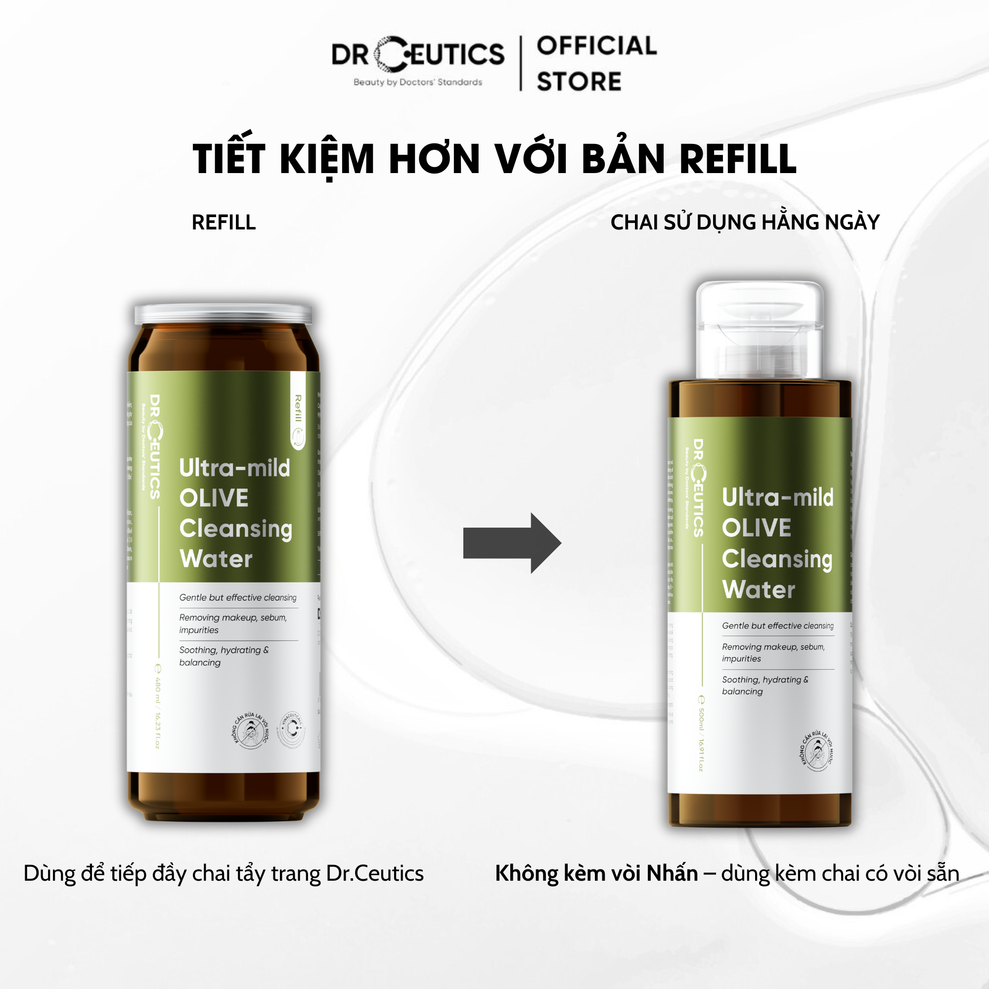 TẨY TRANG DRCEUTICS OLIVE 480ML – DẠNG NƯỚC & SỮA | REFILL TIẾT KIỆM – DỊU NHẸ CHO DA NHẠY CẢM