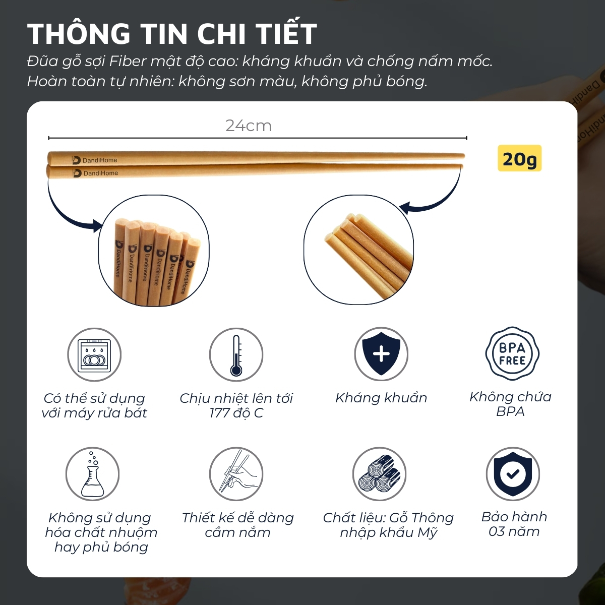 Cuối 2024, DandiHome ra mắt đũa gỗ sợi Fiber, có thể khắc phục tất cả các nhược điểm kể trên.