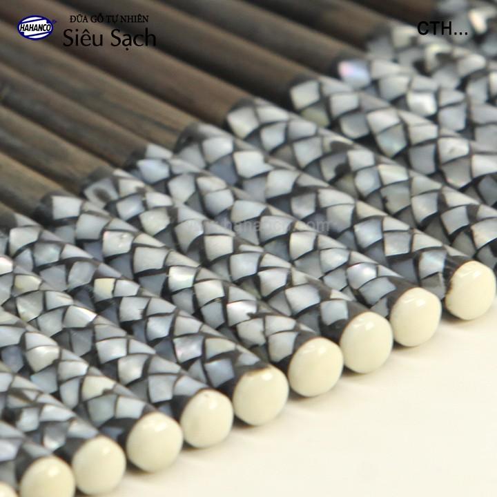 Đũa Gỗ Mun Sọc Đầu Cẩm Xà Cừ HAHANCO (10 đôi) Kháng Khuẩn Siêu Sạch - CTH755 - Lh0966218866