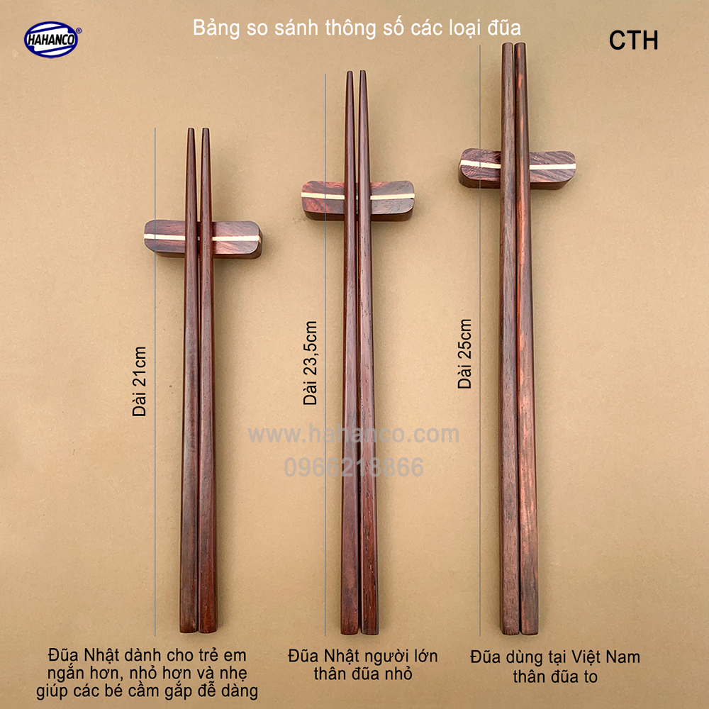 Lưu ý: Hiện nay hàng giả gỗ trắc rất nhiều, hàng giả thường được làm bằng gỗ tạp và ngâm hóa chất nhuộm màu rất độc hại. Để đảm bảo quyền lợi hãy chọn mua đúng đũa gỗ tự nhiên do Công Ty HAHANCO sản xuất.