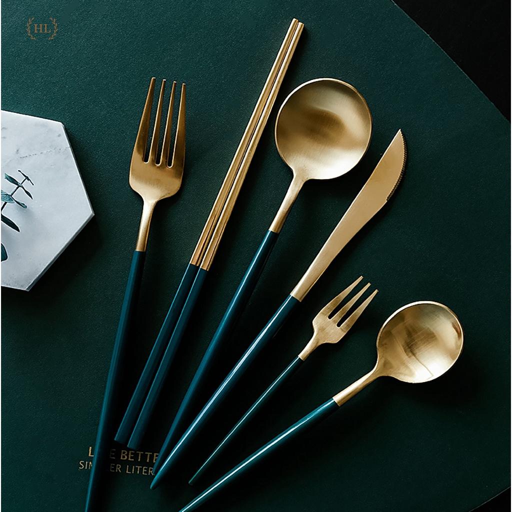 ✨ĐŨA - SÚP - NĨA INOX CAO CẤP KHÔNG MÒN | SET THÌA NĨA INOX PHONG CÁCH TÂN CỔ ĐIỂN HOME LUXURY DECOR XANH TRẮNG