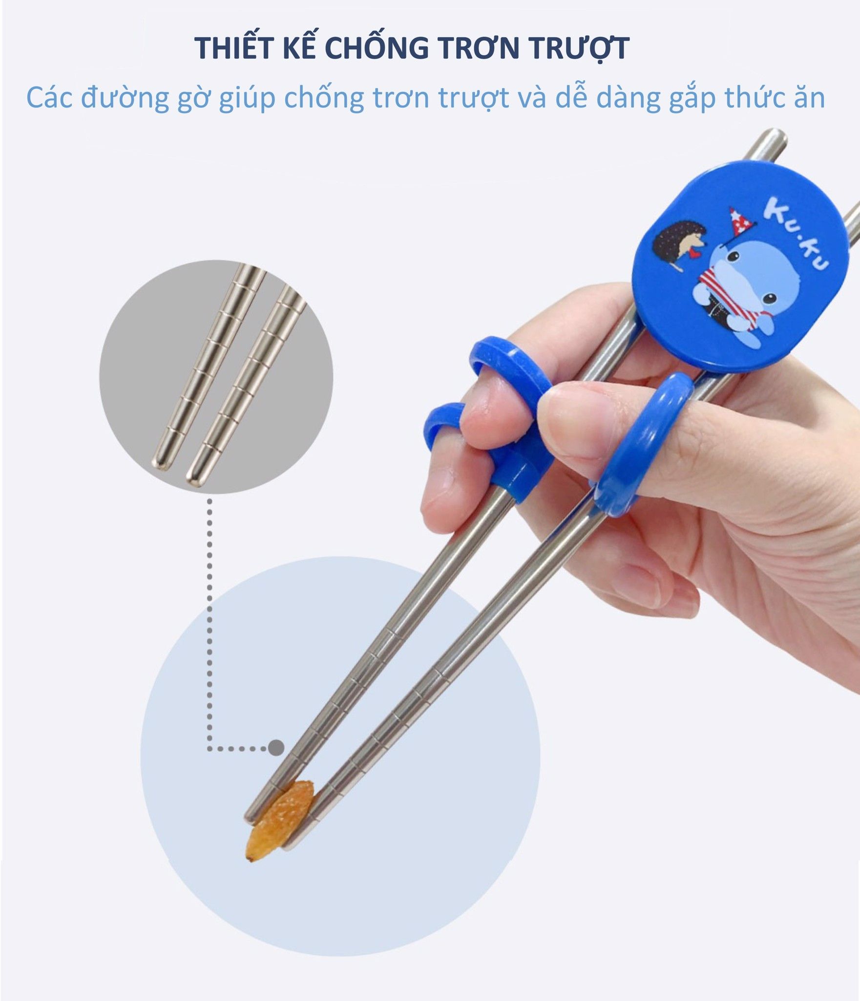 - Hai đầu đũa được thiết kế các đường gờ chống trơn trượt, bé dễ dàng gắp thức ăn;