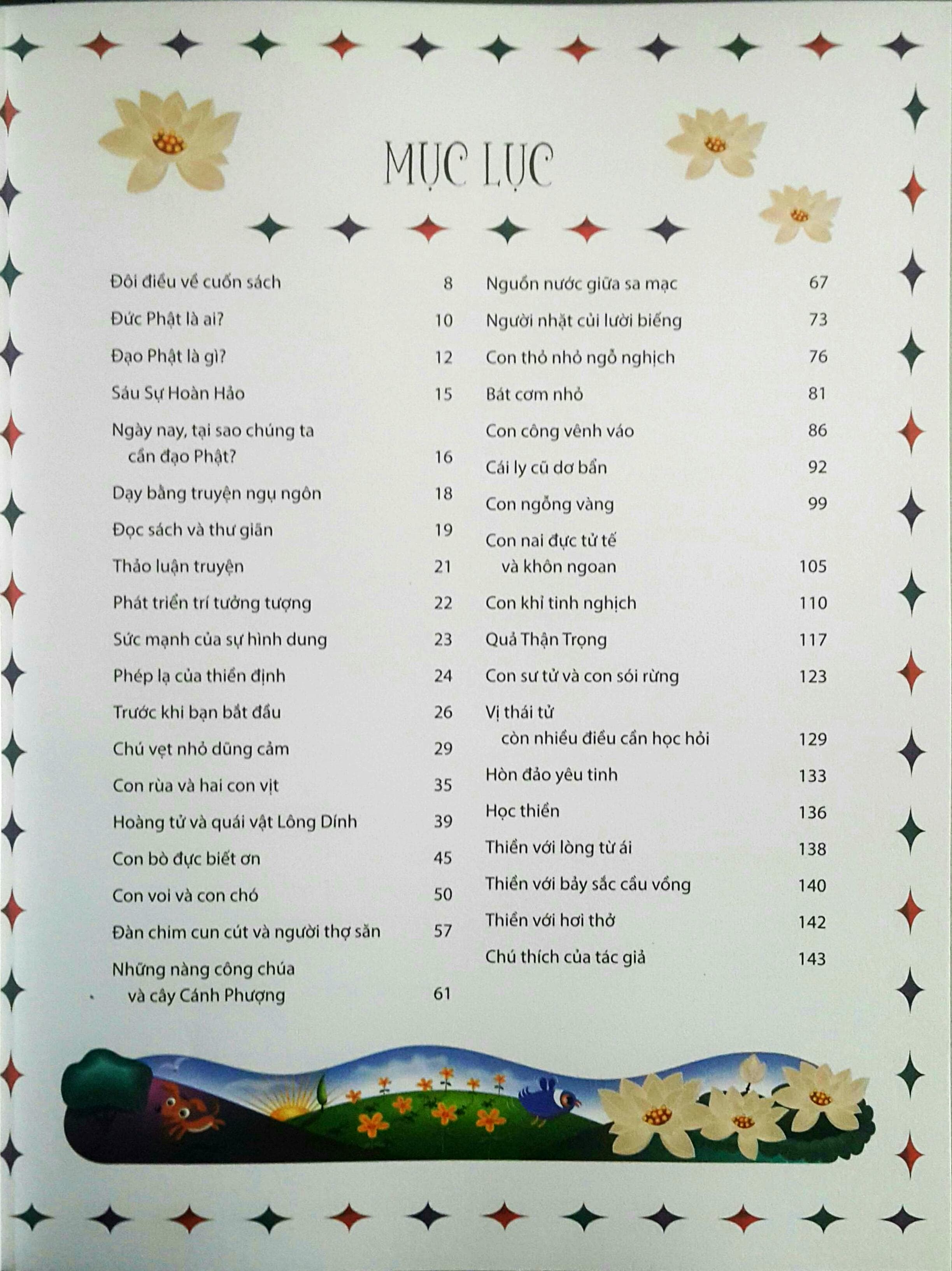 Những truyện ngắn này có thể được yêu thích một cách đơn giản như những truyện giải trí. Tuy nhiên, mỗi câu chuyện cũng truyền tải đến người nghe một cách tinh tế những bài học quý giá của đạo Phật, từ đó cả người đọc lẫn người nghe có thể hấp thụ bất cứ điều gì thích hợp với họ. Và để hỗ trợ các bậc cha mẹ, một giá trị thiết yếu của đạo Phật được làm nổi bật ở cuối mỗi câu chuyện – như là điểm khởi đầu cho cuộc thảo luận xa rộng hơn với con nếu bạn muốn. Những thông điệp này cung cấp những lời khuyên về các chủ đề như lòng từ bi, tính rộng lượng (quảng đại) và tính tạm thời (vô thường).