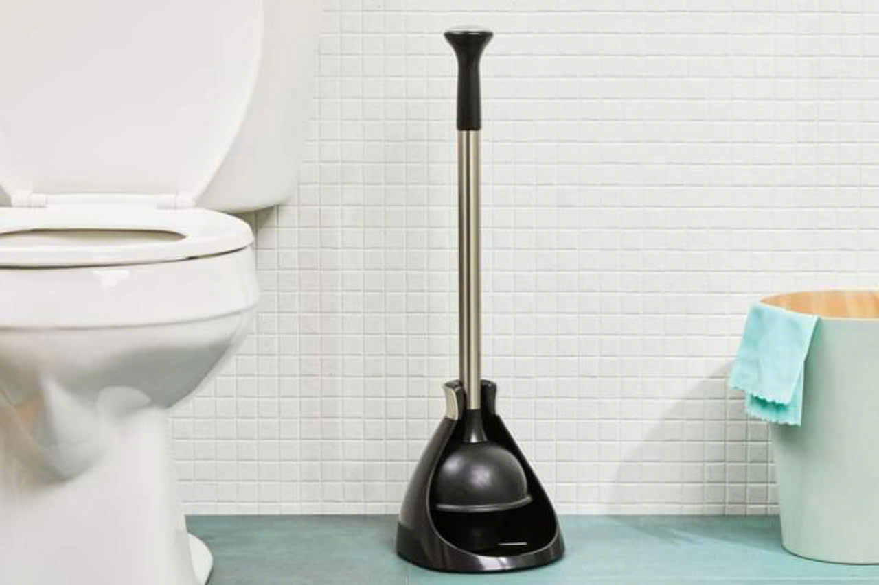 Dụng cụ thông tắc bồn cầu Simplehuman bao gồm 1 thanh pít tong và 1 giá đỡ chống nhỏ giọt Lỗ mở lớn của giá đỡ giúp pít tông dễ dàng tháo rời. Nó cũng