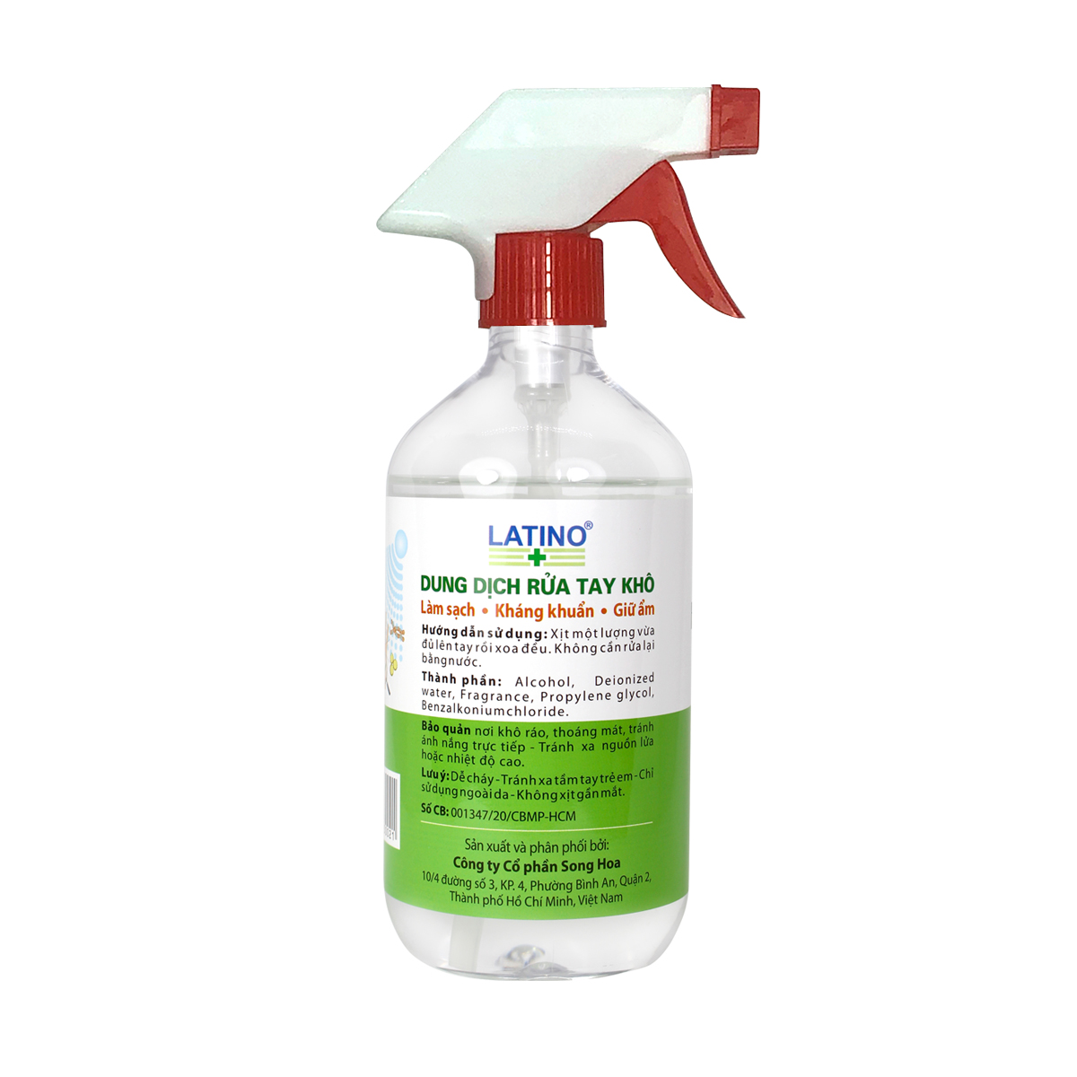 Dung dịch rửa tay khô Latino trà xanh 500ml - Nước rửa tay khô dạng xịt vòi