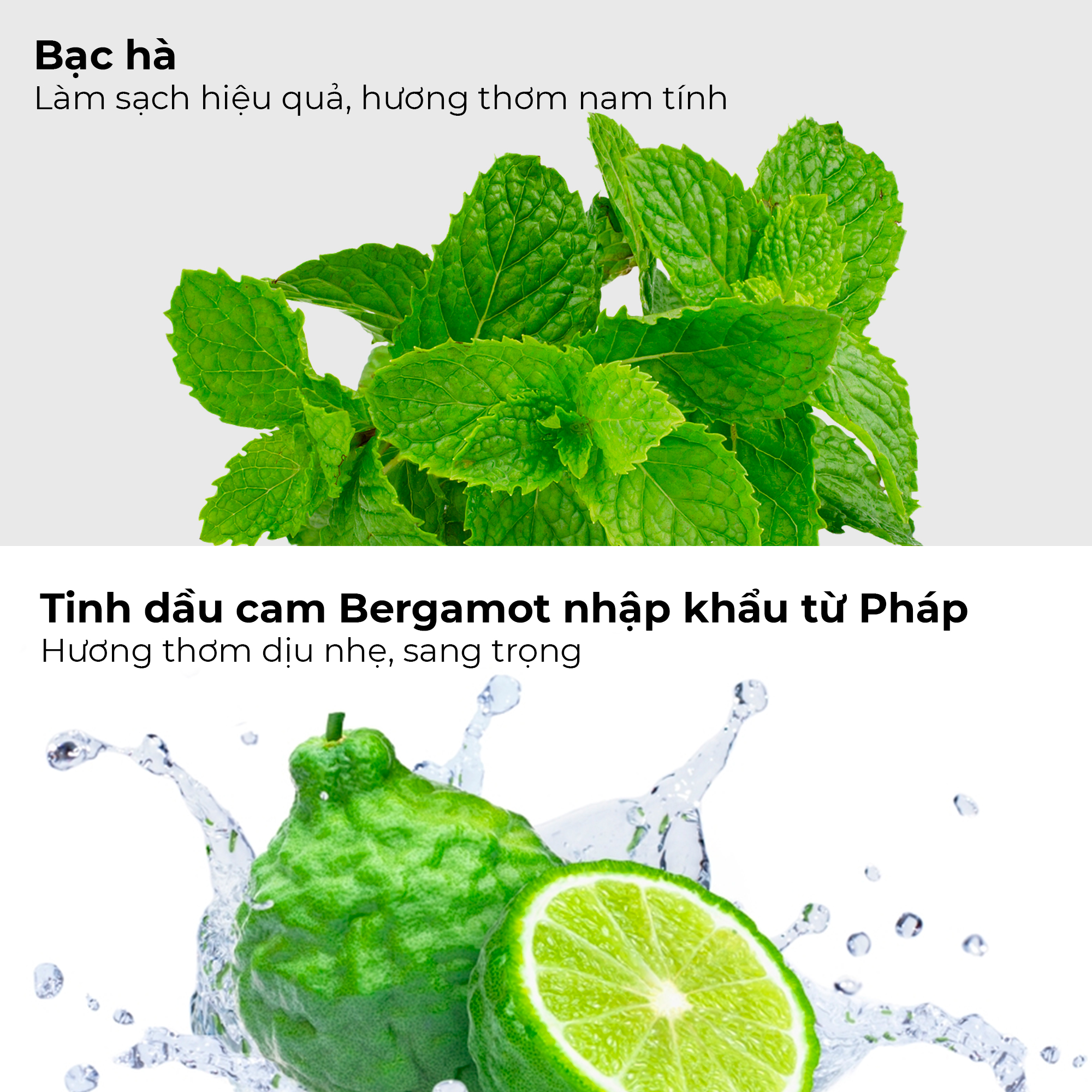 - Tinh dầu bạc hà: khử mùi & làm sạch dịu nhẹ, không gây cảm giác the mát, ngứa ngáy