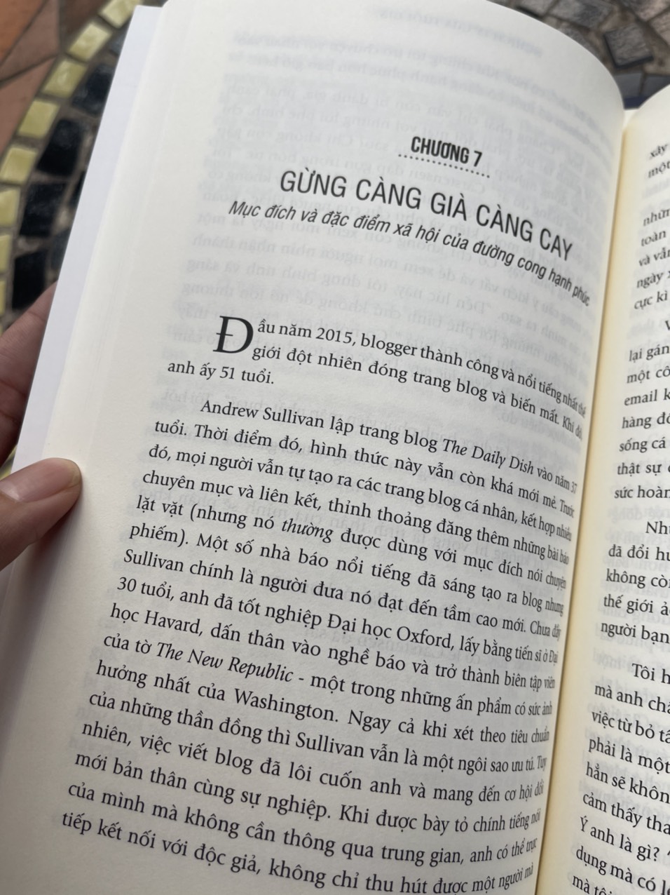 Từ nhiều nghiên cứu thực tiễn và độc đáo, nhà báo danh tiếng Jonathan Rauch sẽ trả lời nhiều câu hỏi dành cho các bạn độc giả đang phải vật lộn với khủng hoảng tuổi trung niên. Tác giả sẽ chỉ ra rằng cuộc đời từ lứa tuổi 20 đến 40 có đồ thị hạnh phúc hình sin, mức độ hạnh phúc giảm dần từ lứa tuổi thanh xuân tràn trề lạc quan xuống đến đáy ở tuổi trung niên trì trệ và lại bắt đầu đi lên khi chúng ta bước sang tuổi U50.