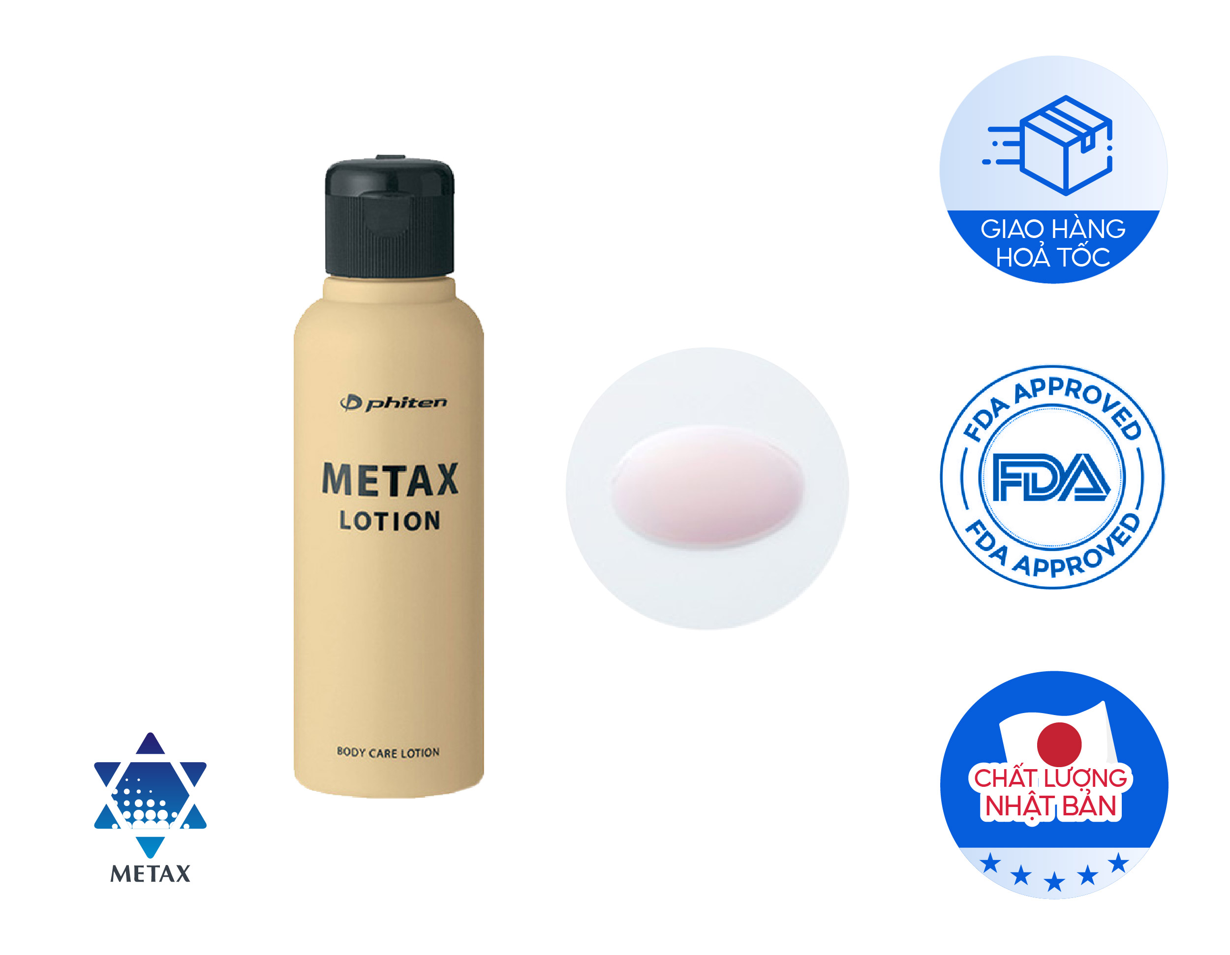 Mua tại TiktokDưỡng thể thư giãn Phiten Metax Lotion B SKU: EY187000 Phiten Metax Lotion B là một loại dưỡng thể thế hệ mới giúp thư giản cơ bắp tức thì. Metax Lotion được sử dụng phổ biến tại Nhật với mùi hương cam chanh sảng khoái. Sản phẩm đem lại lợi ích sức khoẻ cho từ vận động viên thể thao đến cuộc sống hằng ngày. Đặc điểm sản phẩm:
