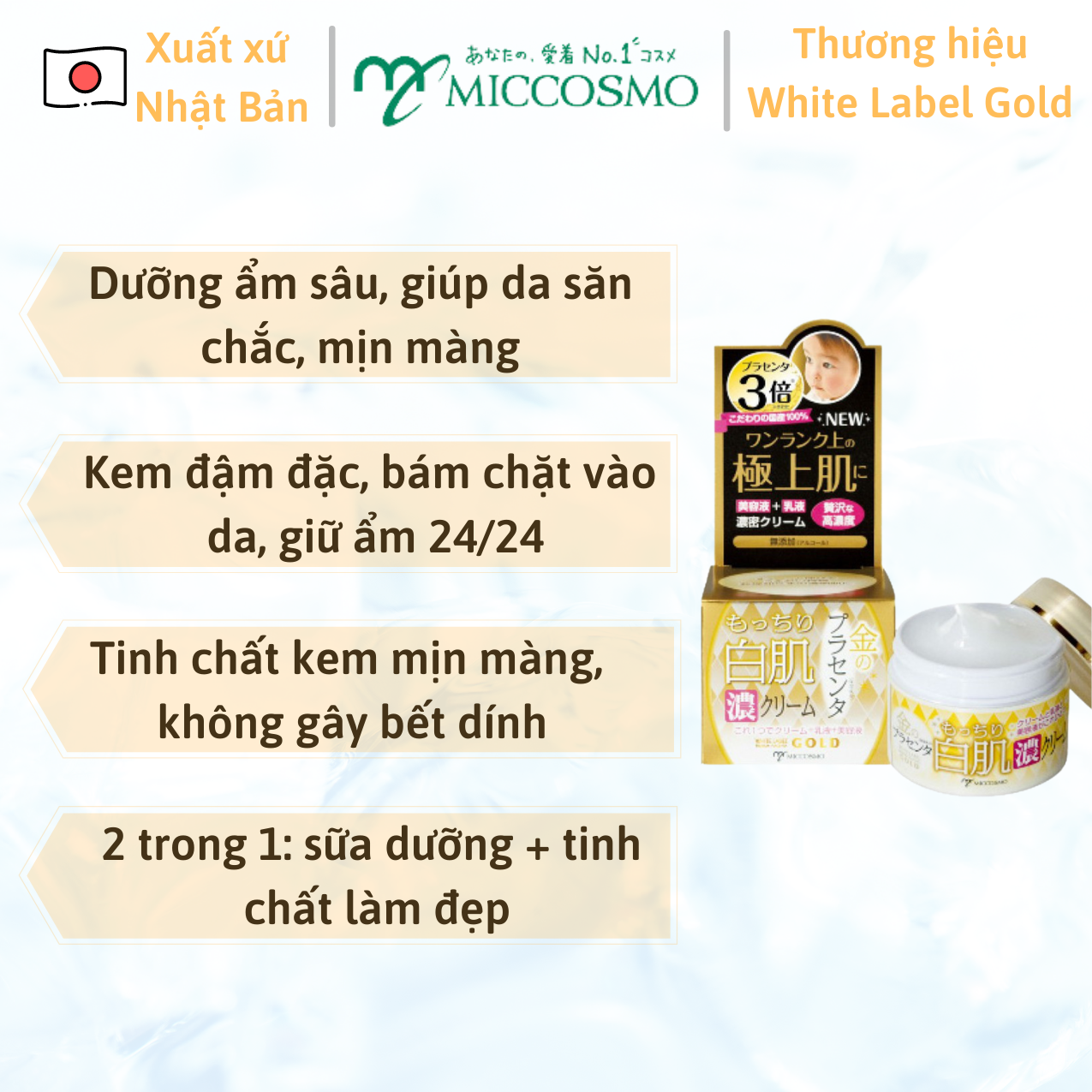 bosanphamduongtrangdanhatban #bosanphamduongdanhatban #bosanphamchamsocdanhatban #yumijapanshop #miccosmo #whitelabelgold #nuochoahongnhatban #kemduongdacaocapnhatban #myphamchinhhangnhatban #myphamnoidianhatban #bosanphamduongdachietxuatnhauthainhatban