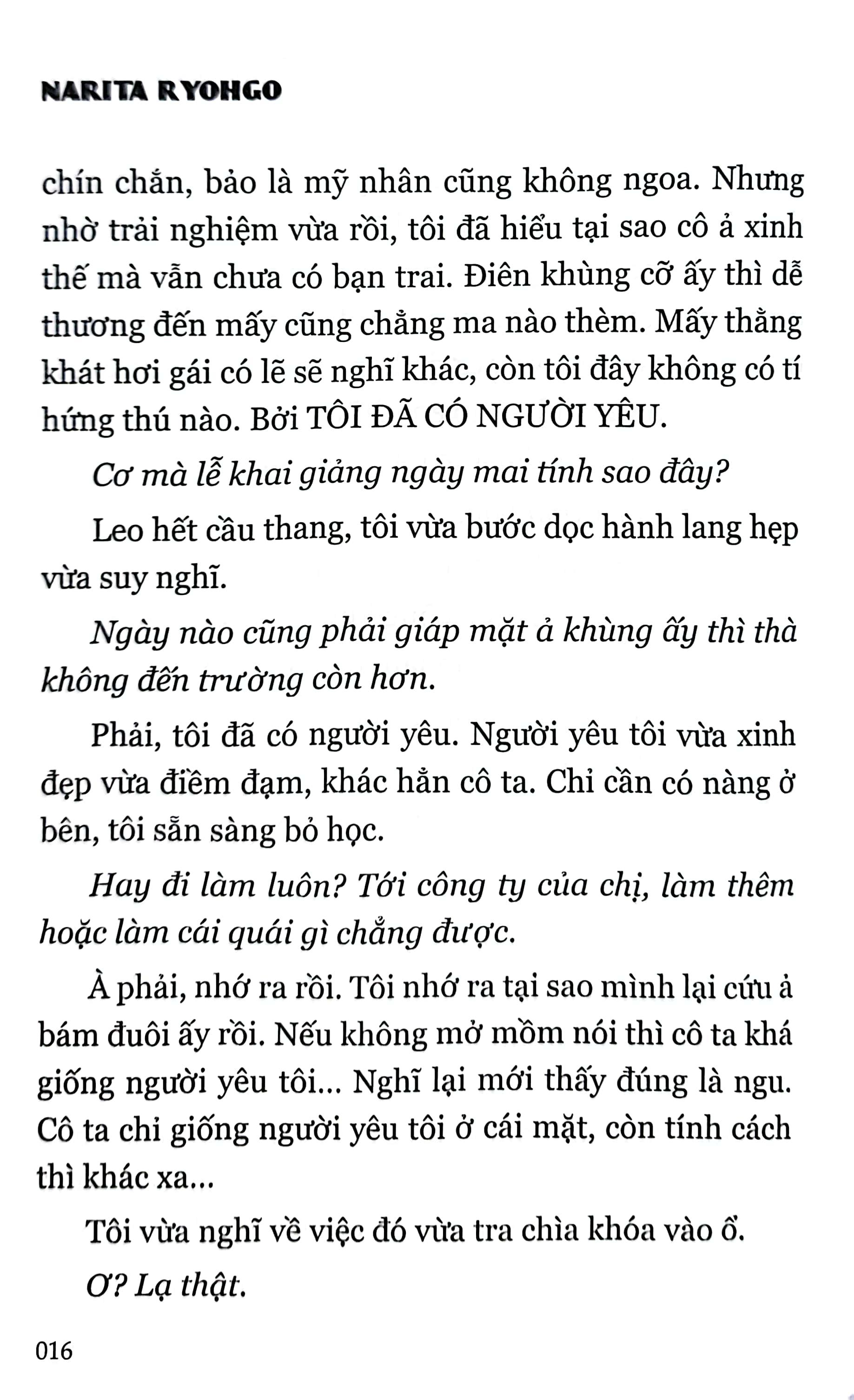“Tò mò quá! Háo hức quá! Nóng lòng quá đi thôi! Ikebukuro ẩn chứa vô vàn điều mới mẻ thoắt ẩn thoắt hiện mà m.ình chưa hay biết. Đây chính là lý do m.ình không nỡ rời xa phố thị! Mình thích loài người! Mình yêu con người! Yêu vô cùng!”