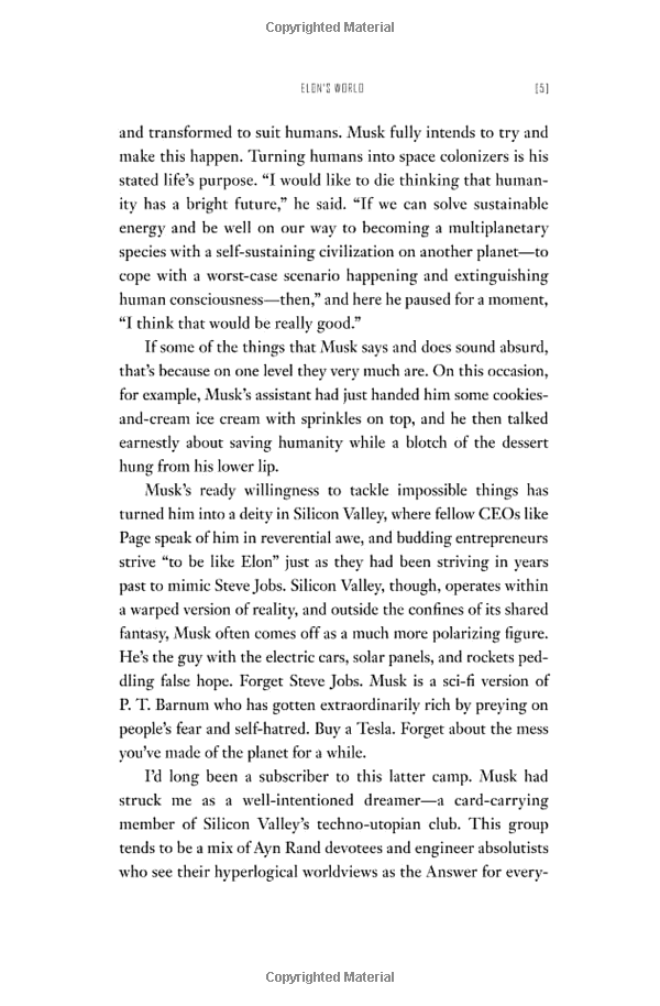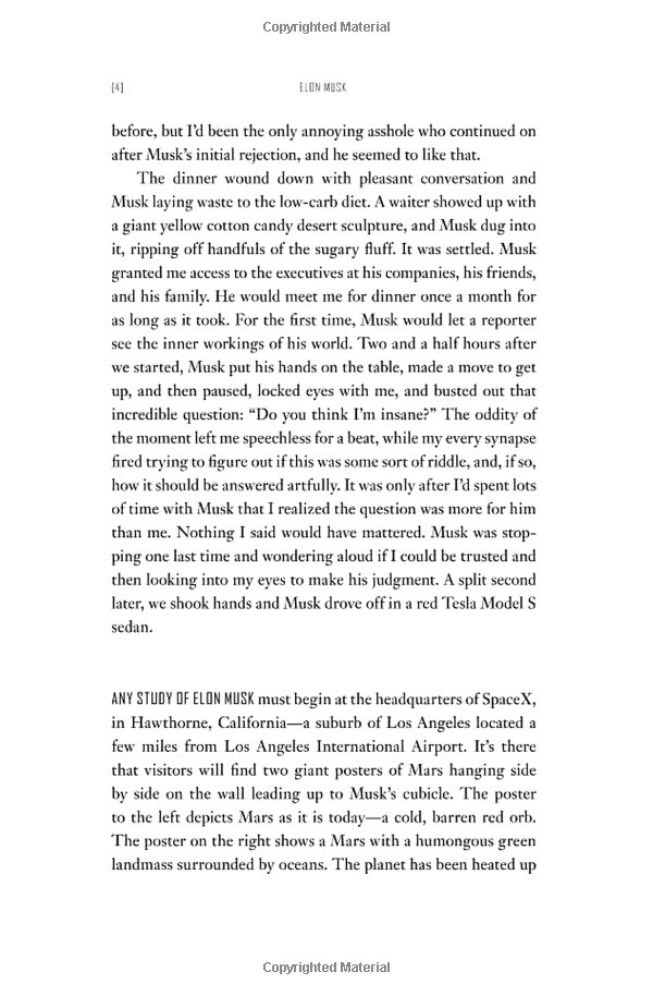 access to Musk, his family and friends, the book traces the entrepreneur's journey from a rough upbringing in South Africa