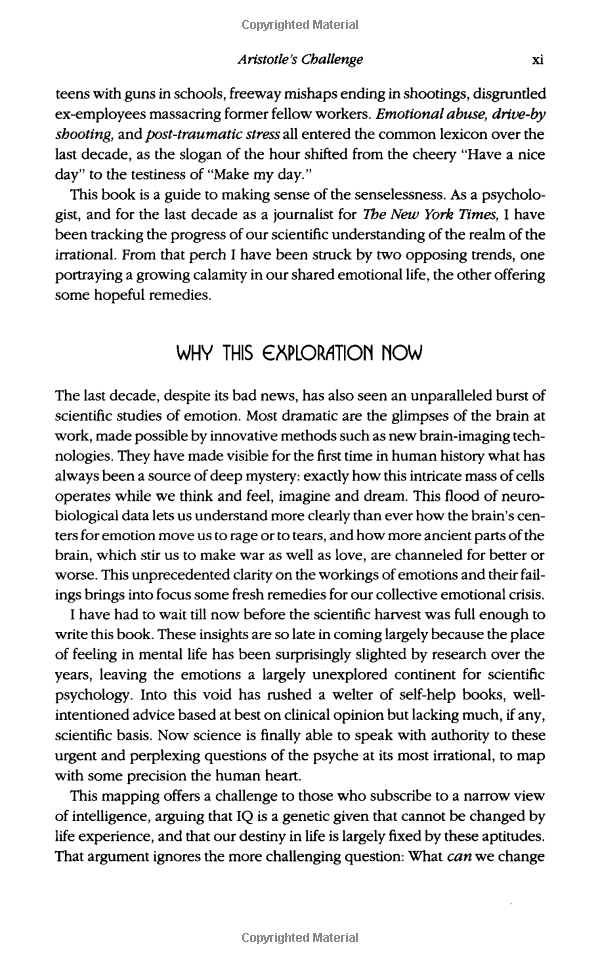 The best news is that "emotional literacy" is not fixed early in life. Every parent, every teacher, every business leader, and everyone interested in a more civil society, has a stake in this compelling vision of human possibility .