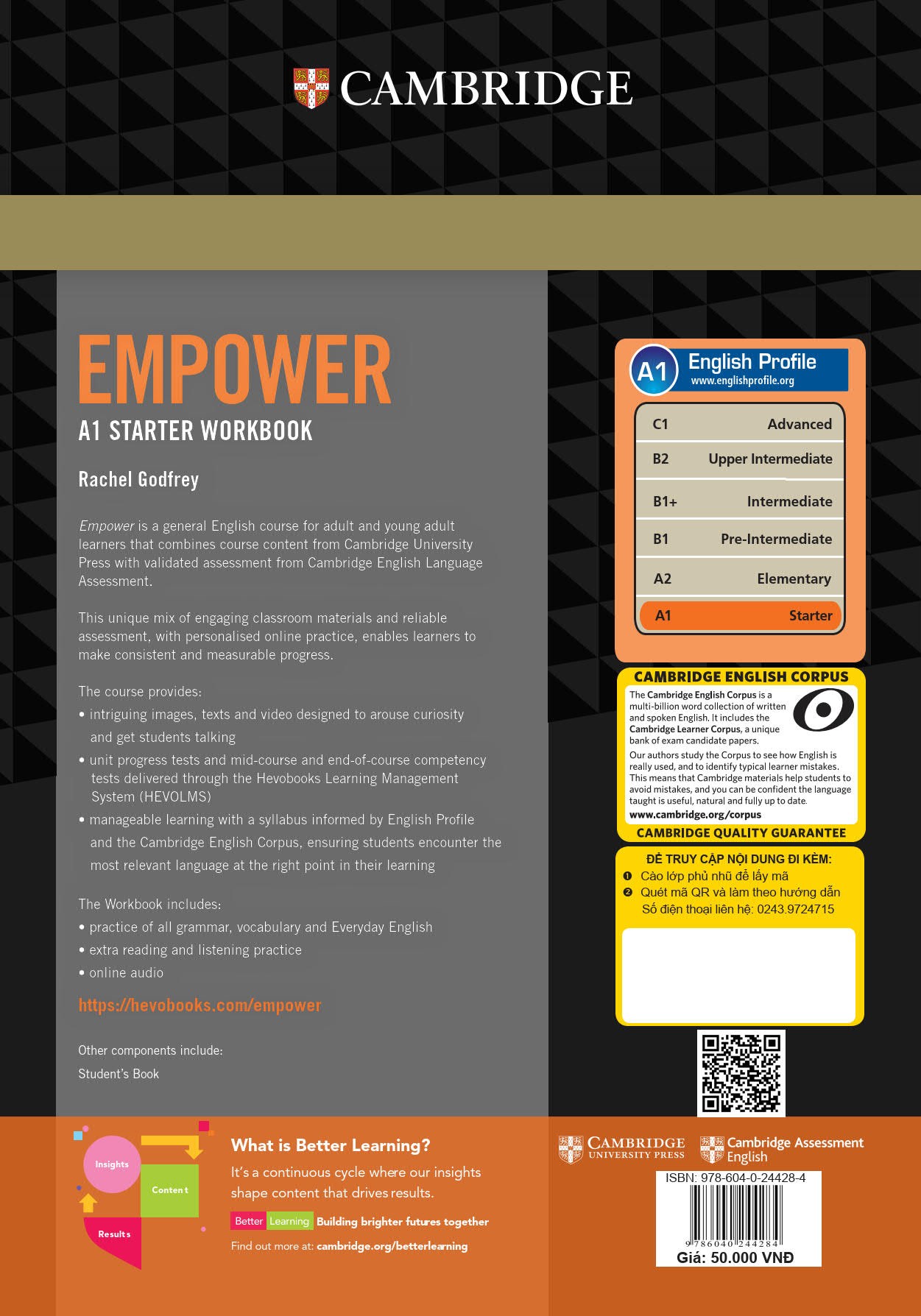 Mua tại TiktokTên đề tài: Empower A1 Starter Workbook with Online Access Tác giả: Cambridge. Rachel Godfrey Khổ sách: 21 x 29.7 Năm xuất bản: 2020 Công ty phát hành: Công ty CP Sách Đại học - Dạy nghề Nhà xuất bản: NXBGDVN