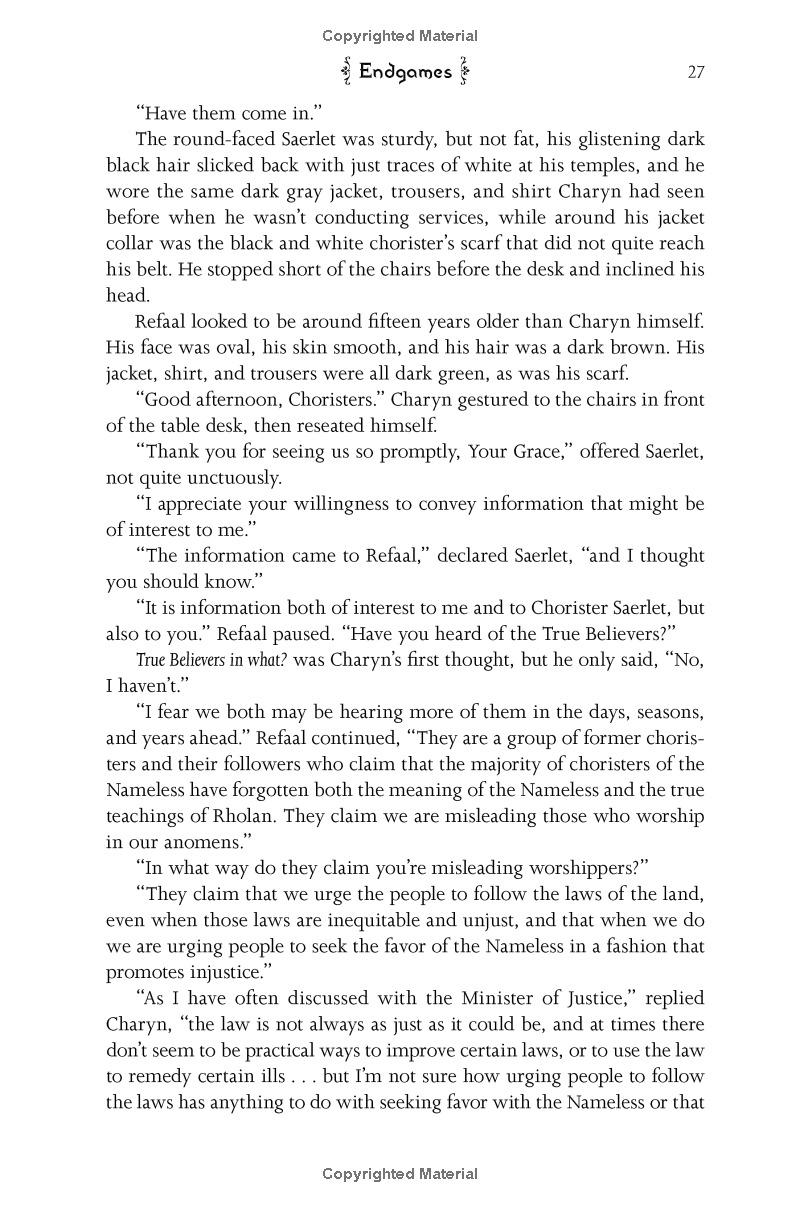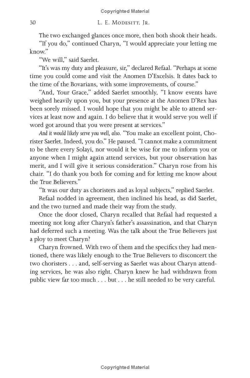 Solidar is in chaos. Charyn, the young and untested ruler of Solidar, has survived assassination, and he struggles to gain control of a realm in the grip of social upheaval, war, and rioting. Solidar cannot be allowed to slide into social and political turmoil that will leave the High Holders with their ancient power and privilege, and the common people with nothing. But the stakes are even higher than he realises.