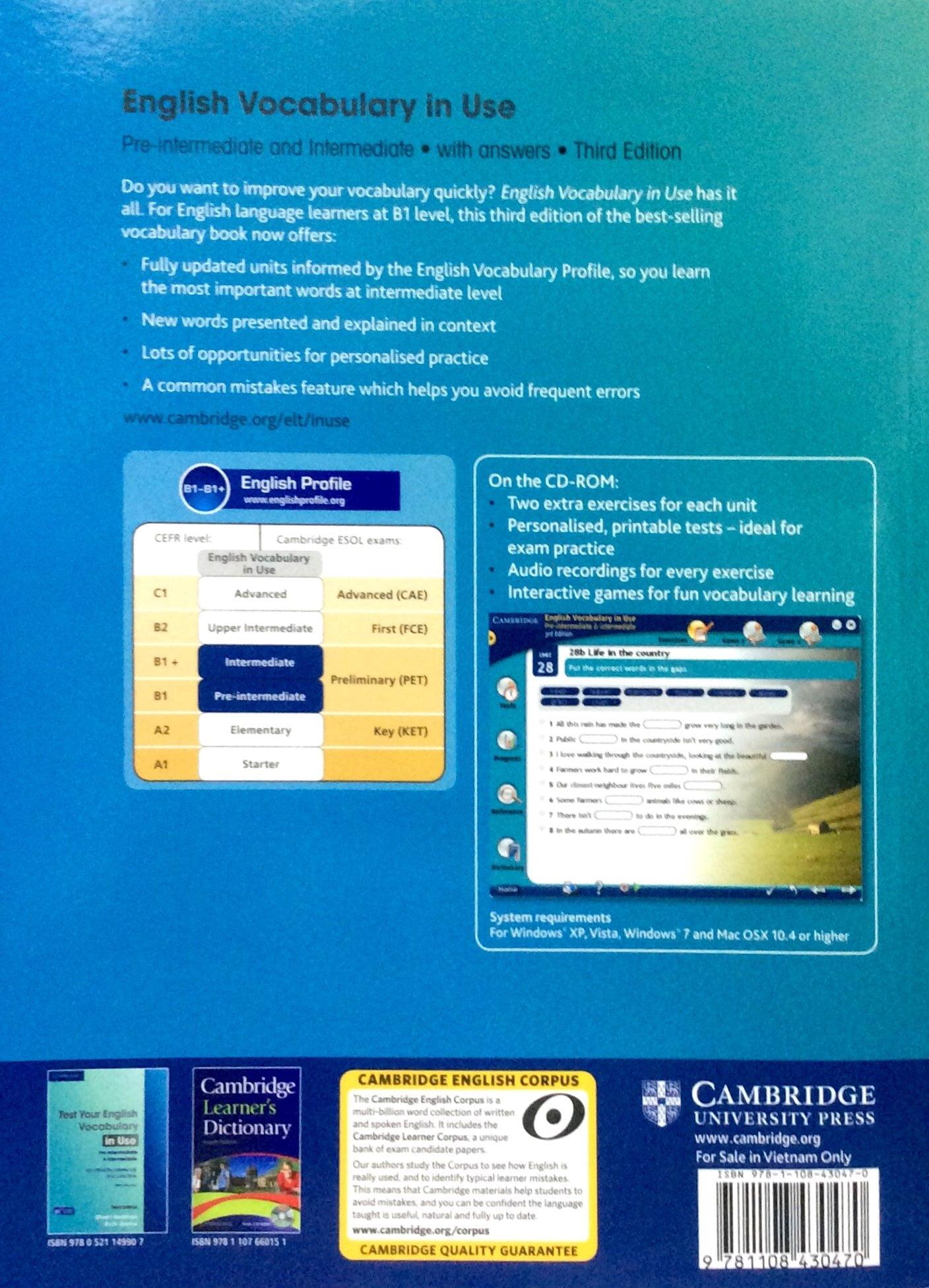 ✨English Vocabulary in Use: Pre-Intermediate and Intermediate Book with Answers: Vocabulary Reference and Practice (Kèm CD)