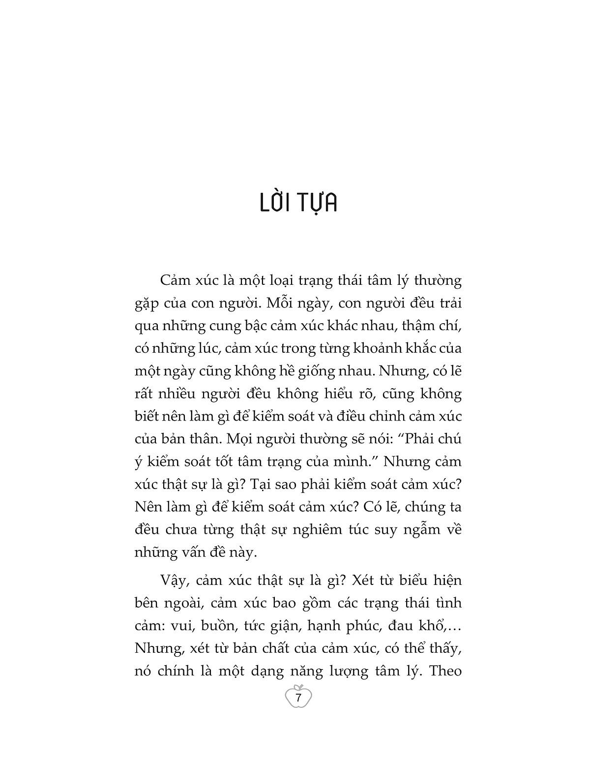 Tác giả Vu Nhất Lỗ Người Dịch Vân Khánh NXB NXB Lao Động Năm XB 2021 Trọng lượng (gr) 320 Kích Thước Bao Bì 20.5 x 13 cm Số trang 312 Hình thức Bìa Mềm Cảm xúc thật sự là gì? Xét từ biểu hiện bên ngoài, cảm xúc bao gồm các trạng thái tình cảm: vui, buồn, tức giận, hạnh phúc, đau khổ,… Nhưng xét từ bản chất của cảm xúc, có thể thấy, nó chính là một dạng năng lượng tâm lý. Cảm xúc tốt sẽ luôn mang đến trí nhớ tế bào tốt. Ngược lại, nếu không kịp thời xử lý những cảm xúc tiêu cực, chúng sẽ nhanh chóng sinh ra một khối lượng lớn chất độc, và truyền đến các cơ quan và bộ phận trong cơ thể. Cảm xúc vốn là một khái niệm trung tính, không có quy ước đúng sai. Vì vậy, khi quan tâm đến cảm xúc của bản thân, chúng ta phải luôn đảm bảo sự lý trí, không được coi cảm xúc như một chuyện xấu, không được dùng đủ mọi cách để kìm nén hay ức chế cảm xúc. Chúng ta nên lý trí, kiềm chế cảm xúc, nhìn nhận cảm xúc một cách thoải mái, nhẹ nhàng. Con người cần kiểm soát tốt cảm xúc của chính mình. Kiểm soát cảm xúc không đơn giản chỉ là không khóc, không cười, không tức giận, cũng không phải là kìm nén, cầu toàn, trên hết, kiểm soát cảm xúc là một dạng EQ. Tuy nhiên, muốn sở hữu EQ cao không phải là chuyện dễ dàng.