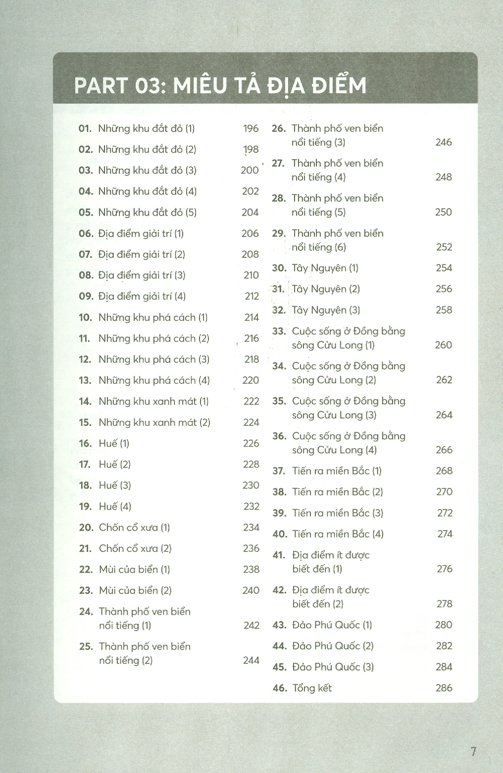 VSTEP - Chinh Phục Kỹ Năng Nói Bậc B1, B2+ Cuốn sách được chia thành 10 bài học, mỗi bài học tập trung vào 1 chủ đề người học thường gặp trong kì thi VSTEP.