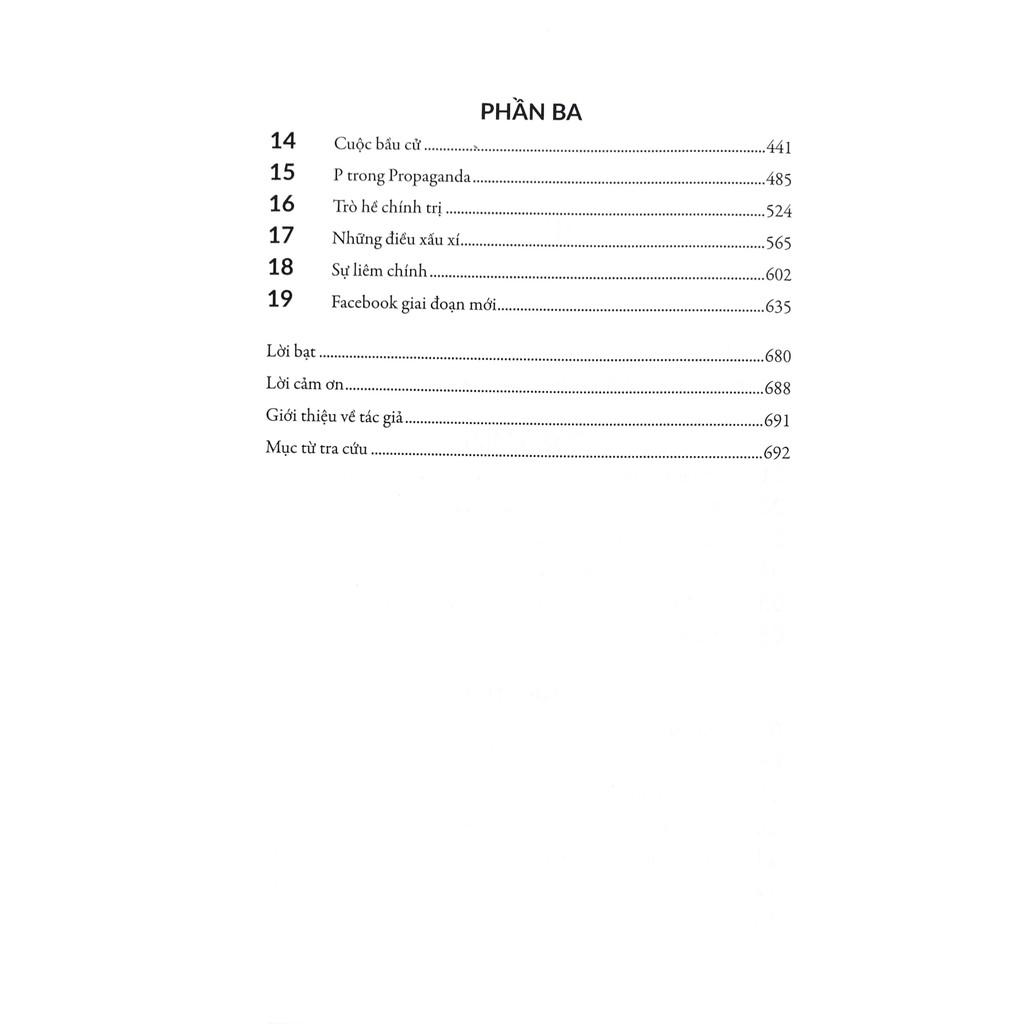 Mua tại TiktokCuốn sách nói về sự hình thành và phát triển của Facebook cùng những khó khăn, thách thức mà công ty này từng phải trải qua. Trong năm thứ hai đại học, Mark Zuckerberg đã tạo ra một trang web đơn giản hoạt động như một mạng xã hội trong khuôn viên trường. Trang này được đón nhận vô cùng mạnh mẽ và rất nhanh sau đó sinh viên trên toàn quốc đã đăng ký sử dụng Facebook. Từ một trang web đơn giản ban đầu, Mark Zuckerberg cùng đội ngũ đã nghiên cứu và phát triển thêm nhiều tính năng và ứng dụng cho Facebook, có những tính năng được đón nhận nhưng cũng có những tính năng thất bại và nhanh chóng biến mất sau đó. Và khi Facebook phát triển cũng là lúc các đối thủ cạnh tranh bắt đầu xuất hiện như Instagram, Snapchat… Cuốn sách cũng đưa ra thông tin về những cuộc đàm phán mua lại các công ty này của Zuckerberg. Càng phát triển mạnh mẽ, Facebook càng phải đối mặt với nhiều thách thức, khó khăn khi gặp phải những cáo buộc liên quan đến việc Facebook là nhân tố góp phần tác động vào kết quả của cuộc tranh cử tổng thống Mỹ năm 2016 giữa Donald Trump và Hillary Clinton khi công ty này không xử lý được việc những tin giả lan truyền trên Facebook và những hacker sử dụng nó để đánh cắp thông tin, cùng vụ bê bối dữ liệu Cambridge Analytica. Tác giả cũng đưa ra những thông tin về cách xử lý của Facebook cũng như Mark Zuckerberg đối với tin giả mạo, việc xử lý dữ liệu thông tin của người dùng cũng như kiểm duyệt nội dung. Đánh giá của chuyên gia, tổ chức uy tín về cuốn sách cùng các giải thưởng Một trong những cuốn sách về công nghệ hay nhất năm 2020 – Financial Times “Câu chuyện lịch sử toàn diện và hấp dẫn.” – The Wall Street Journal “Một câu chuyện mới mẻ, đầy tính cập nhật và nội bộ.” – The Economist Levy miêu tả một công ty công nghệ nơi không có ai chịu trách nhiệm về những gì nó đã phát hành… Cuốn sách khép lại với sự công nhận rằng Facebook đang đi trước với những sáng tạo mới – từ việc Facebook kết hợp với dự án tiền tệ kỹ thuật số Libra – trong khi Zuckerberg tiếp tục bác bỏ bất kỳ câu hỏi đạo đức nào về hành vi trong quá khứ của mình. ” – Financial Times Giá trị của cuốn sách này nằm ở chỗ nó tập hợp tất cả các vấn đề về quyền riêng tư, thuật toán của Facebook và vụ Cambridge Analytica. ” – Library Journal