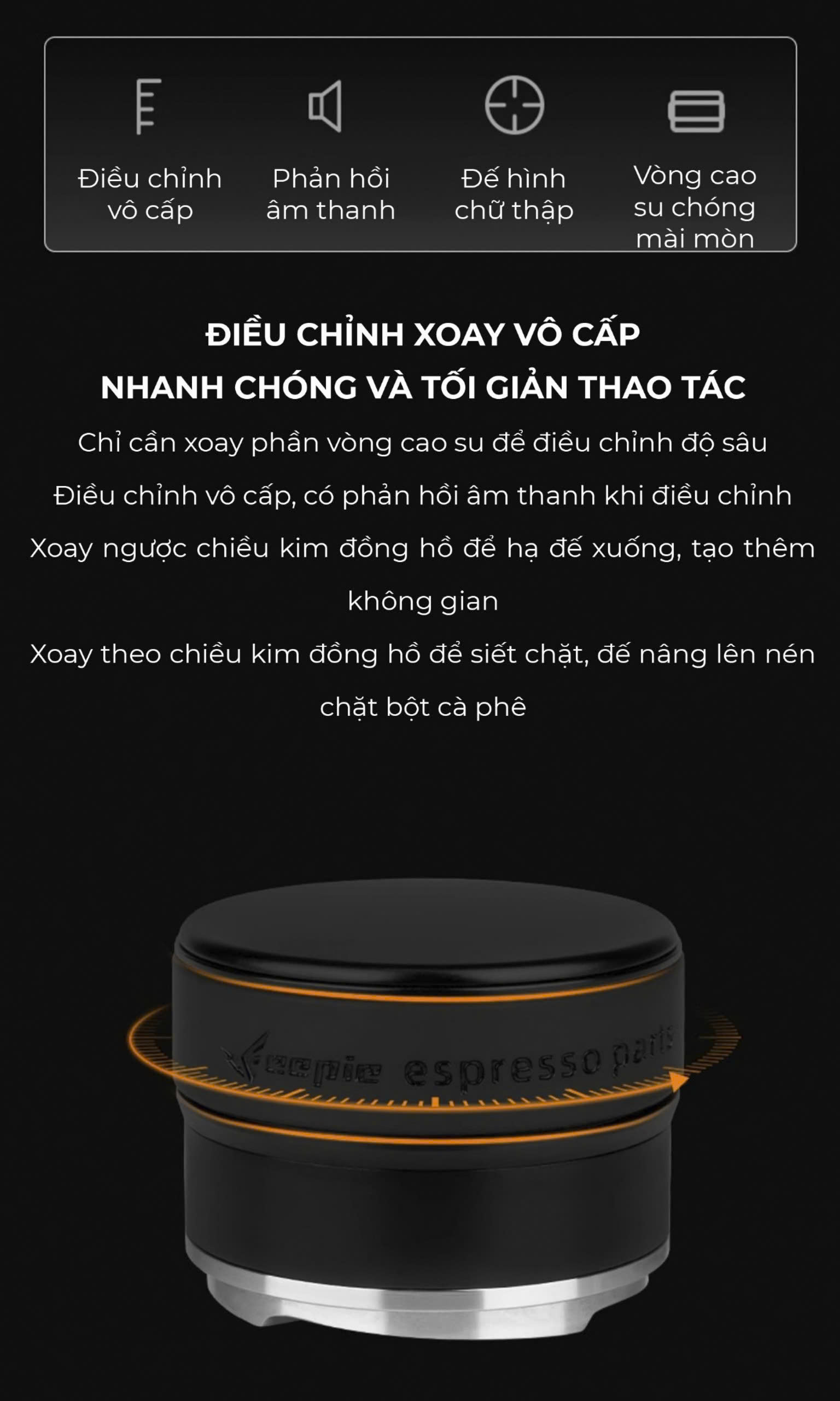 FEEPIE KIM XOAY TÁN BỘT CÓ VÒNG ĐỆM CAO SU – TỐI ƯU CHIẾT XUẤT, CẢI THIỆN CREMA! Bạn muốn phân bố bột cà phê đều hơn, hạn chế kênh rãnh để có chiết xuất