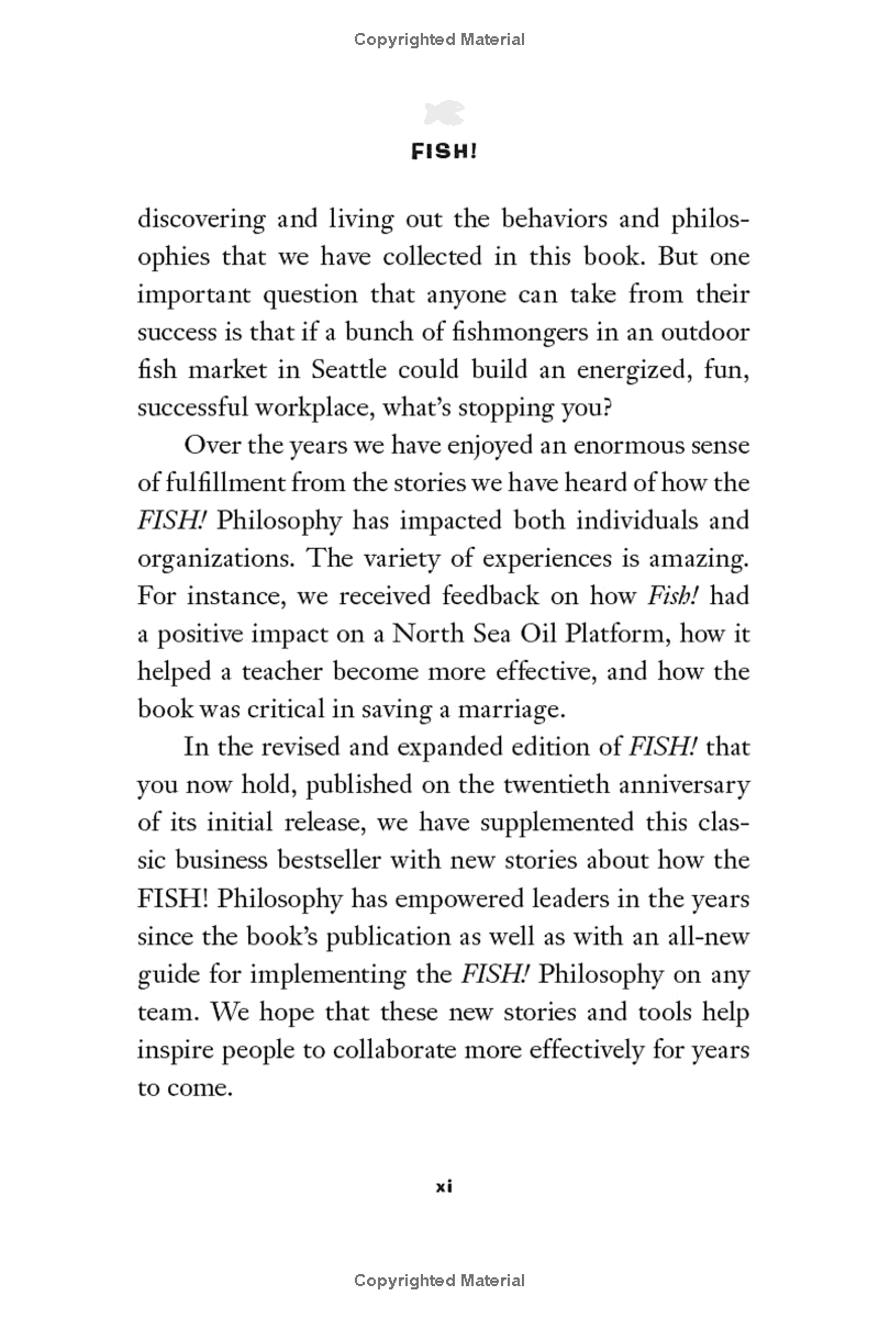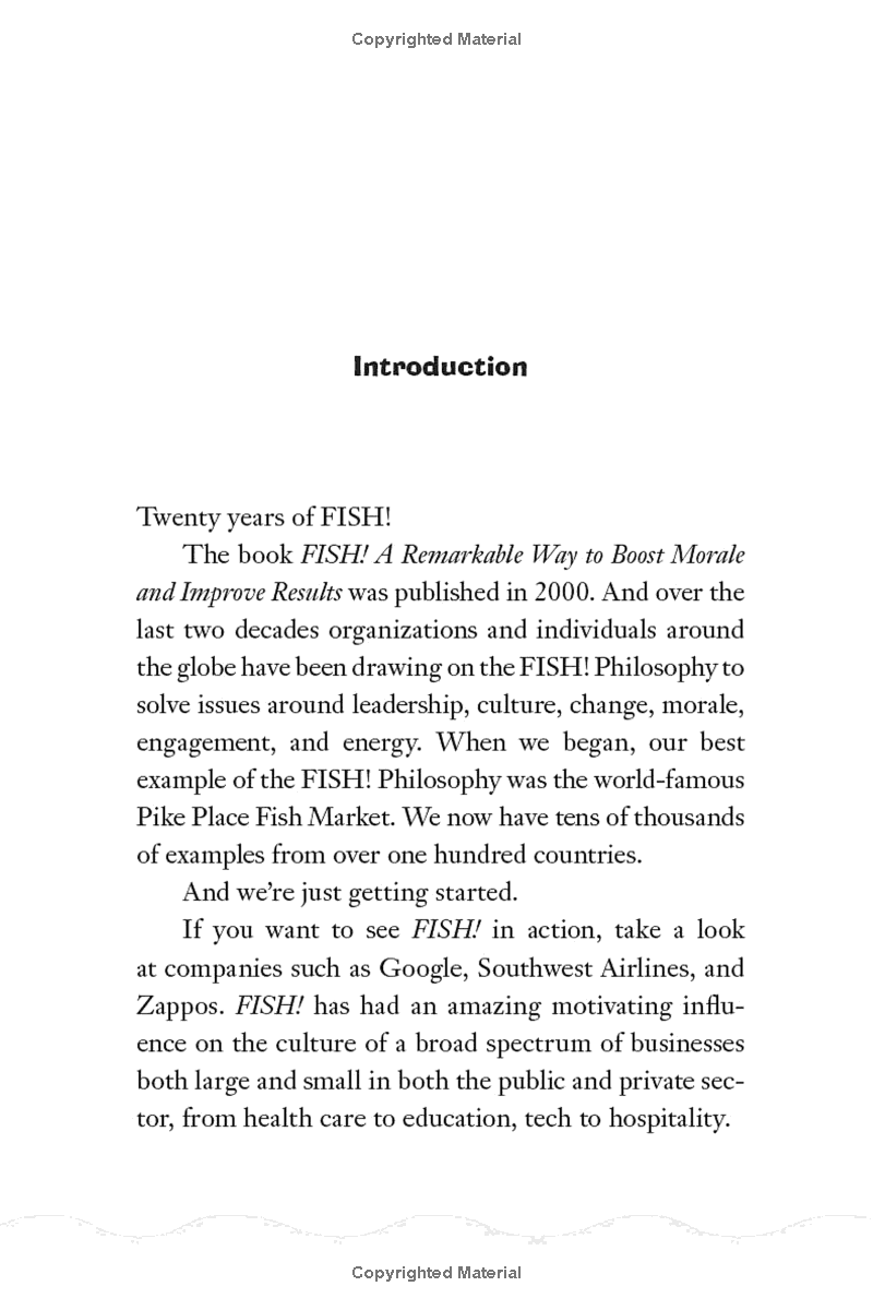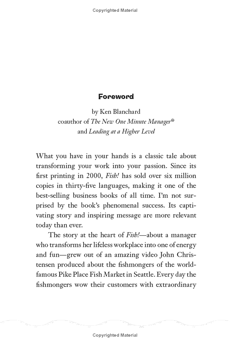Filled with inspiration and timeless wisdom that will resonate with anyone in any field or career level, FISH! is one of the most popular business parables of all time. People in organizations around the world use its practical lessons to improve customer service, build trust and teamwork, bolster leadership, and increase employee satisfaction. They also use the lessons to strengthen personal relationships, and to live with greater purpose and happiness. FISH! will help you discover the amazing power that is already inside you to make a positive difference -- wherever you are in life.