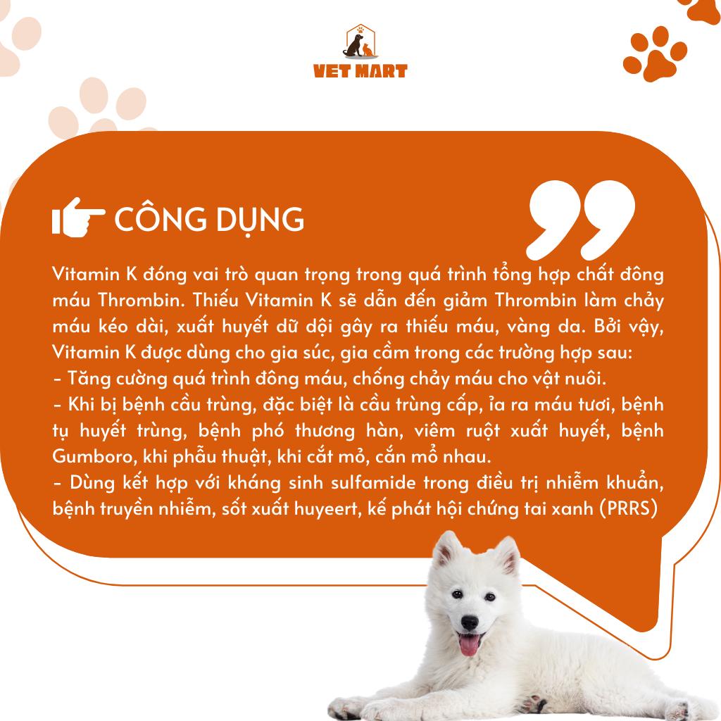✨Five Vitamin K (100G) - Bổ máu, chống chảy máu, hỗ trợ đông máu, cầu trùng cấp cho thú cưng, gia cầm, gia súc