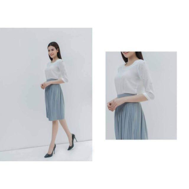 Chân váy dáng dài xếp li nhỏ được nhiều chị em văn phòng ưa chuộng không chỉ tính thẩm mỹ mà còn rất sang trọng, lịch sự nhưng cũng rất rất xinh xắn nhé.